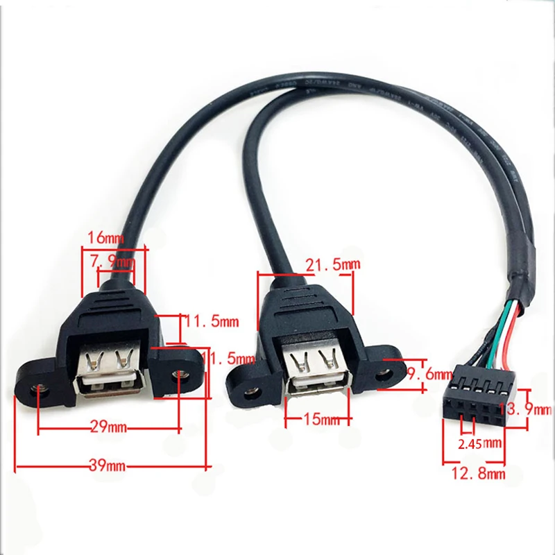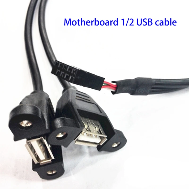 1PCS PH2.54 Terminal To Dual USB DuPont 9-pin Cable Motherboard 1/2 Expansion Extension Cable Full Copper Strip Screw Hole 30CM