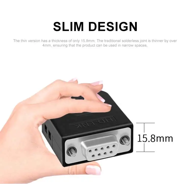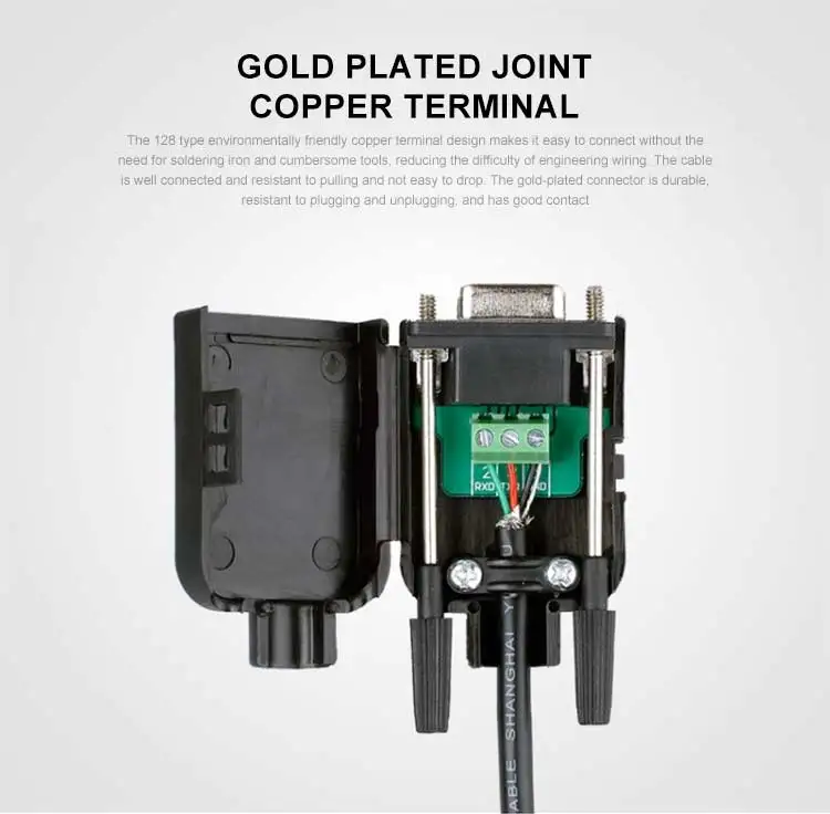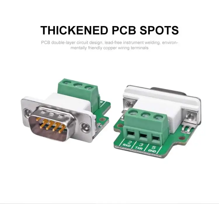 Terminal sin soldadura de puerto serie DB9 RS232, Junta COM macho hembra de 9 pines conectada a conector ultrafino chapado en oro de 2, 3 y 5 pines