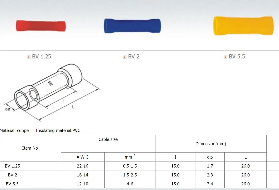 Comprar Terminales de crimpado de Cable eléctrico, Terminal de prensado de tubo de cobre prensado en frío, 50 Uds., BV1.25, BV2.5, BV5.5