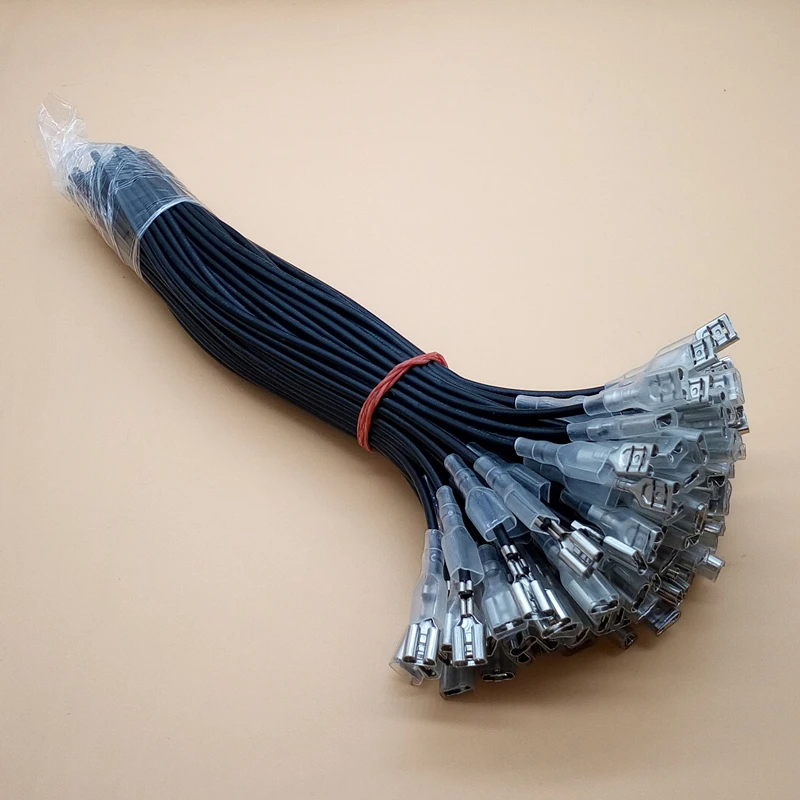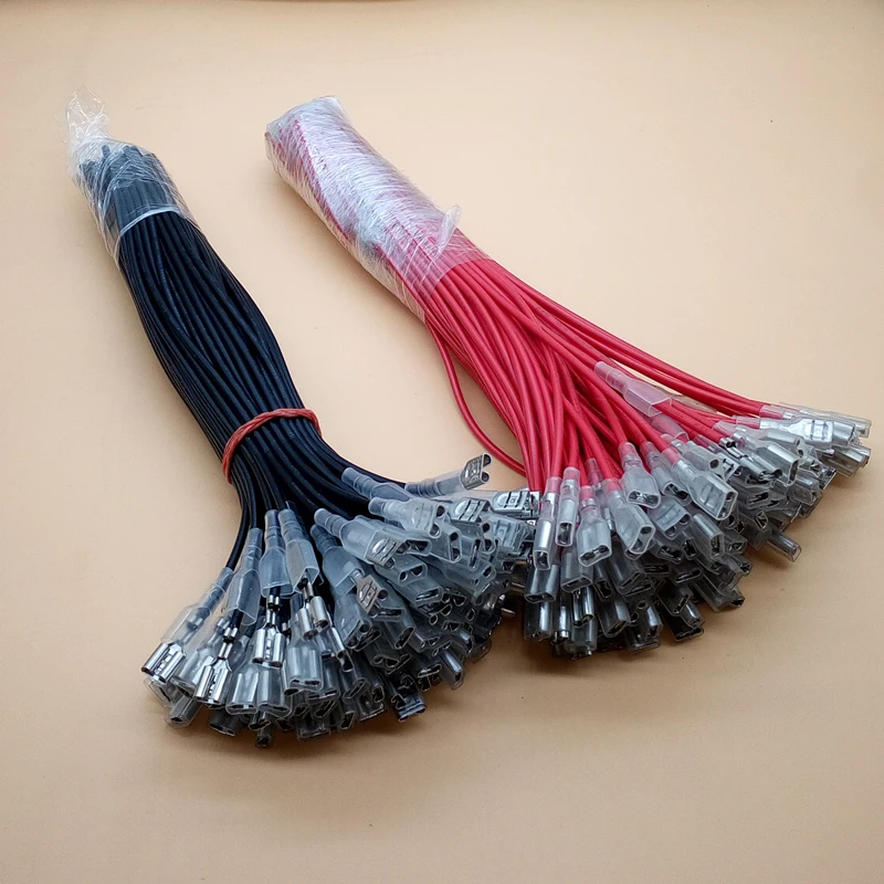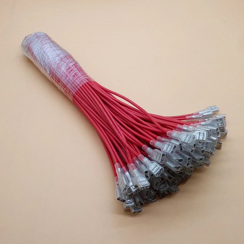 Comprar Terminales de crimpado de pala hembra, conector de cable, 20CM, 22AWG, rojo y negro, 6,3mm, 20 unidades/10 pares