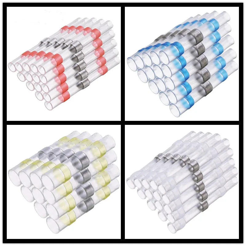 Terminales de empalme de manga de sellado de soldadura a prueba de agua, Conector de cable eléctrico termorretráctil, Kit de conectores a tope, surtido, 10, 20, 50 piezas