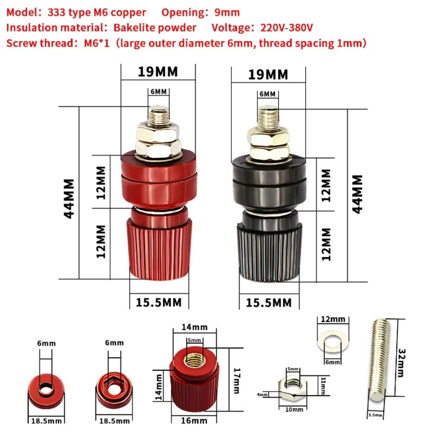El paquete incluye: 2 x terminal de poste rojo + 2 x terminal de poste negro