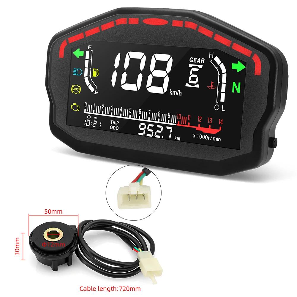 Comprar Termómetro Digital para motocicleta, velocímetro de 12V, tablero Universal, tablero de motocicletas, odómetro LCD ajustable para Yamaha