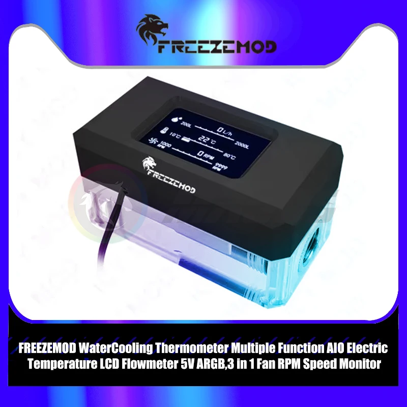 Comprar Termómetro de refrigeración por agua, medidor de flujo LCD de temperatura eléctrica AIO de múltiples funciones, 5V ARGB, Monitor de velocidad de RPM de ventilador 3 en 1