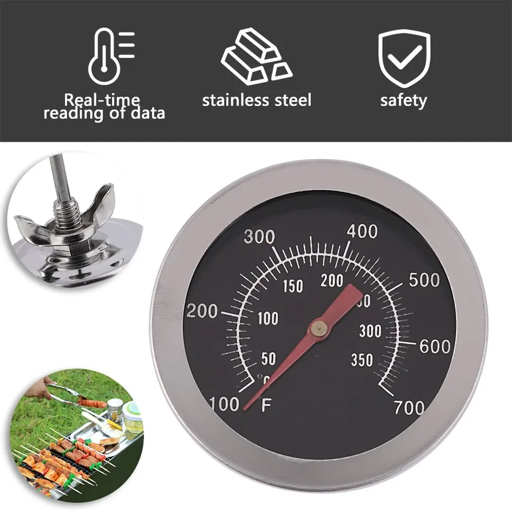 Comprar Termómetros de acero inoxidable para horno, termómetro bimetálico para barbacoa, parrilla de Pit, medidor de temperatura con doble calibre, herramientas de cocina de 500 grados