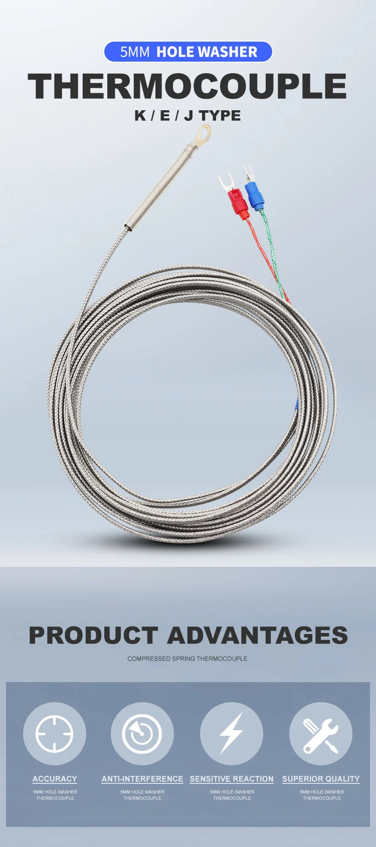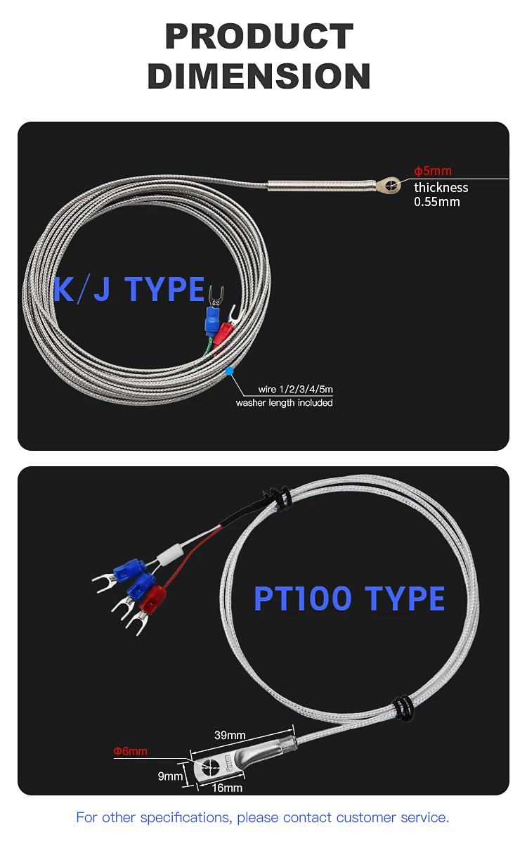 K y J tienen la misma apariencia, pero diferentes materiales internos.El rango de temperatura del tipo K es mayor que el del tipo J.Pero la situación real depende de su dispositivo de visualización de temperatura.Si el dispositivo es K, el sensor debe ser K y si el dispositivo es J, el sensor debe ser J.