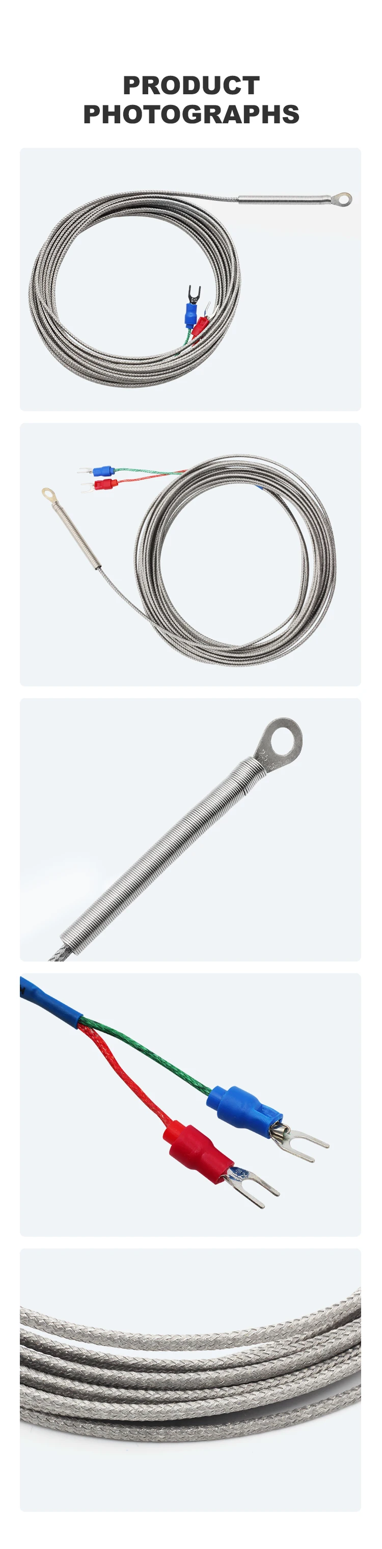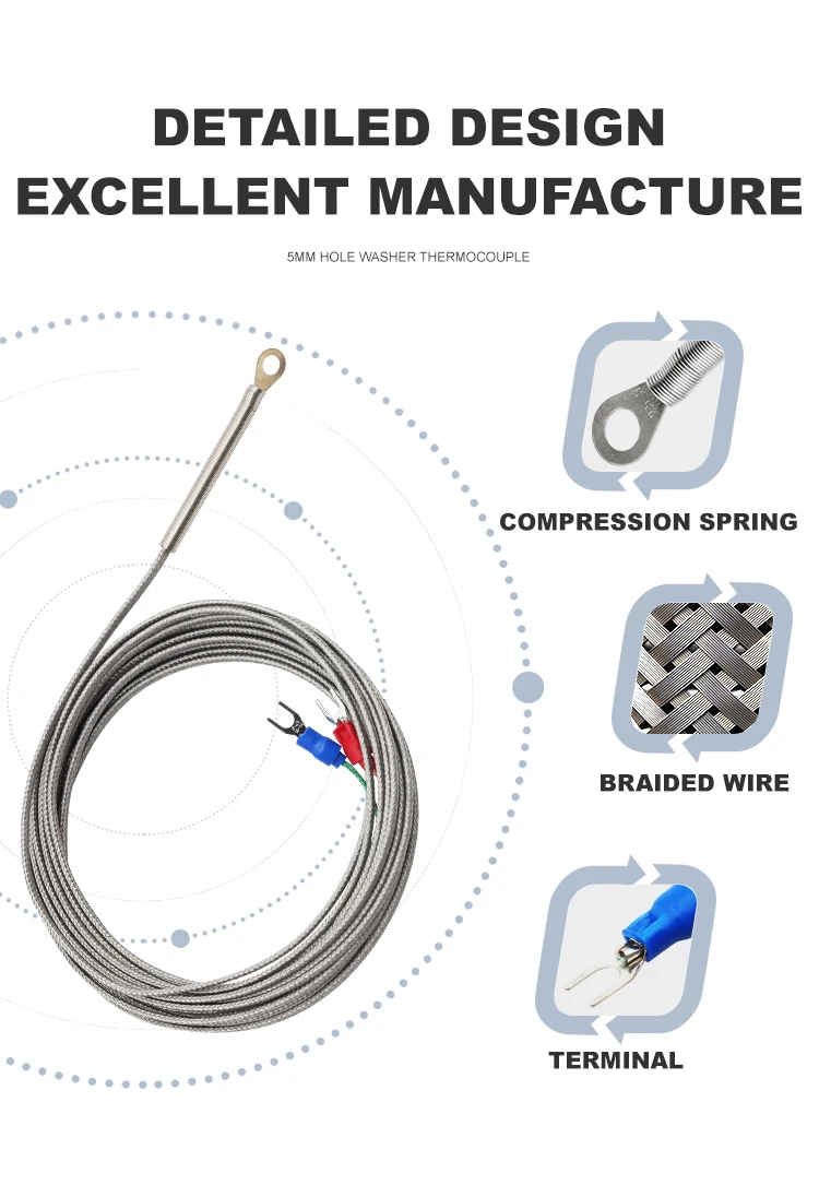 Termopar limpiador de agujeros VaneAims tipo K J PT100 Sensor de temperatura 0,5/1/2/3M Cable trenzado para controlador de temperatura
