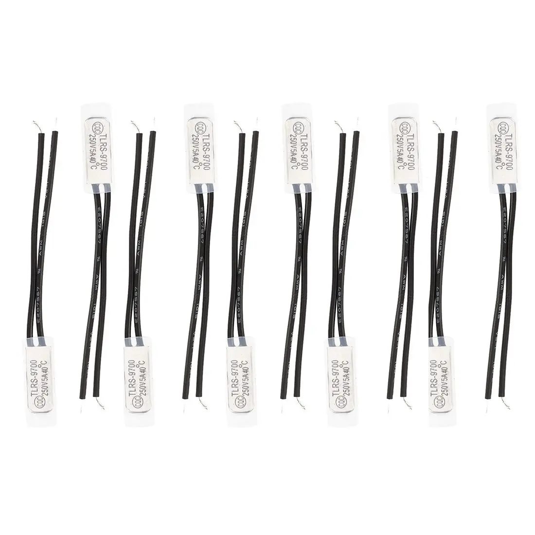 Nombre del producto: Interruptor de control de temperatura; Modelo. No : TLRS9700;Material: plástico, contacto bimetálico: NO; Voltaje nominal: 250V; Corriente: 5A Temperatura máxima de desconexión nominal: 40 Celsius;Color: tono plateado, negro Longitud del cable: 6,5 cm/2,6 "; de la cabeza Dimensiones: 20x8x3mm/0,79" x 0,31 "x 0,12"(L * W * T) Peso neto: El producto TLRS9700 de 31G es un tipo de termostato que adopta el cabezal bimetálico como elementos de detección de temperatura. Ampliamente utilizado en motores y equipos eléctricos de electrodomésticos, como motores de aire acondicionado, transformadores, aparatos térmicos, etc. Contenido del paquete: 10 interruptores de control de temperatura. Solo se incluye el contenido del paquete anterior, no se incluyen otros productos. Nota: la luz y las diferentes pantallas pueden hacer que el color del artículo en la imagen sea ligeramente diferente del color real. La tolerancia de medición es de +/- 1-3cm.