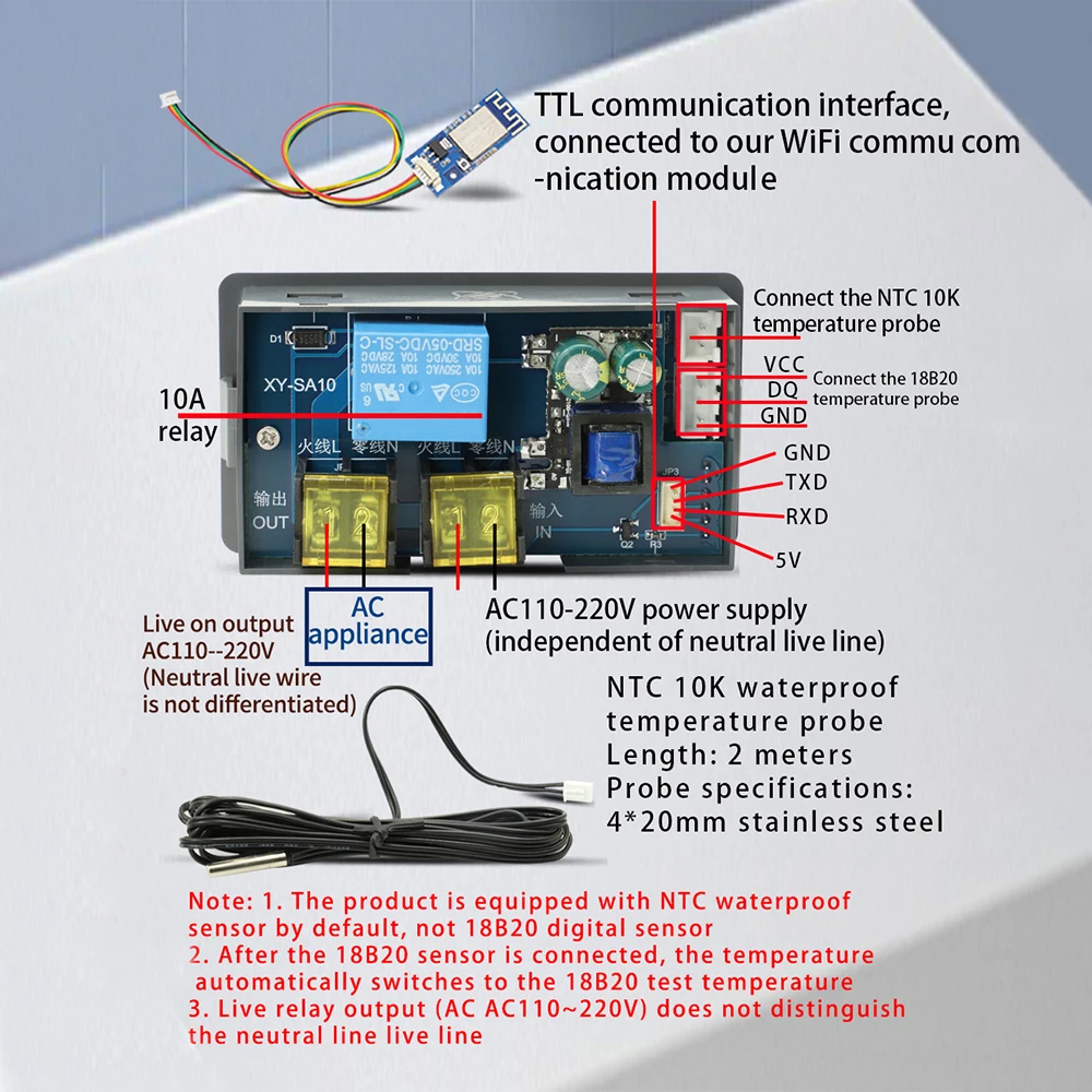 Comprar Termostato de Control remoto SA30 SA10 WIFI 6-30V 110-220V módulo controlador de temperatura Digital aplicación alarma de recolección de temperatura