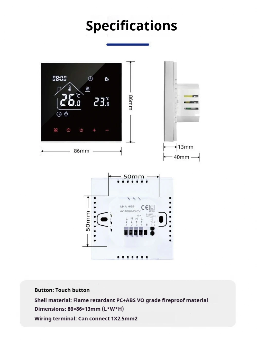 16A/3A Tuya WIFI Smart Thermostat for Water Heating, Electric Heating, Wall-mounted Boiler, Boiler, Floor Heating, Mobile Control