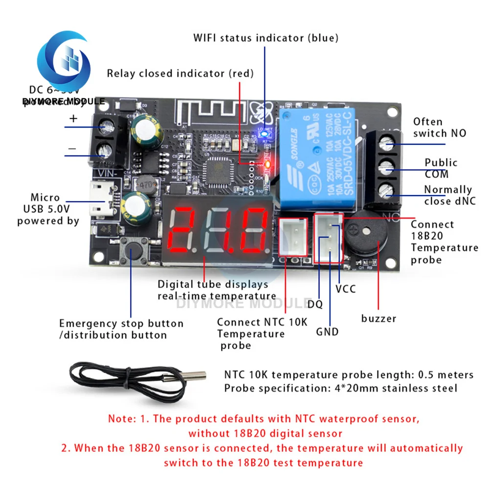 Comprar Termostato remoto WIFI de alta precisión, módulo controlador de temperatura, aplicación de refrigeración y calefacción, XY-WFT1 de recolección de temperatura, WFTX