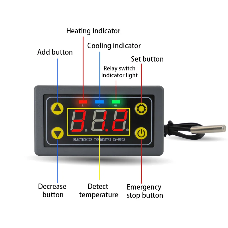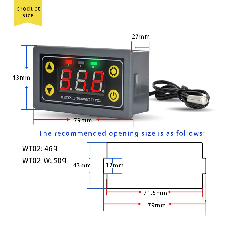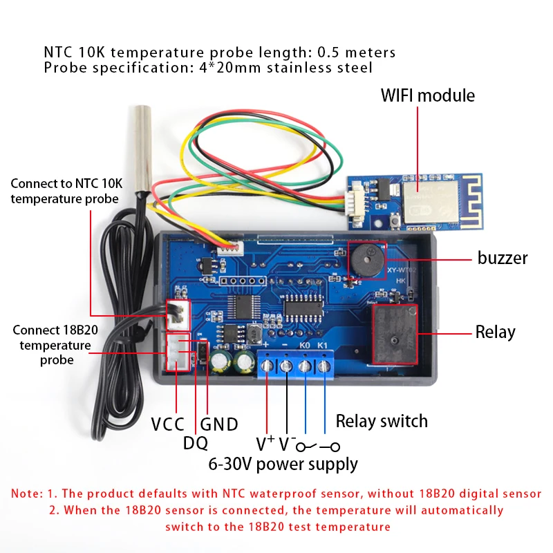 4) Entrada de medición: longitud NTC10K de 0,5 M, tipo impermeable, soporte para 18B20Acceso al sensor digital;