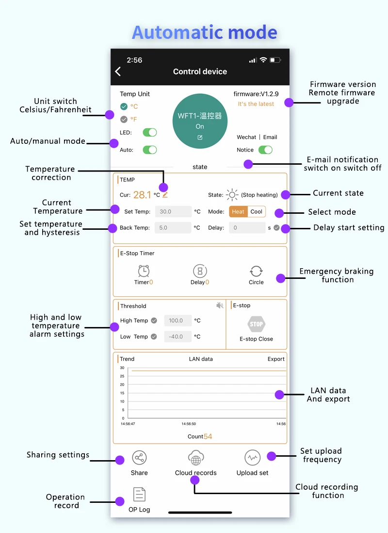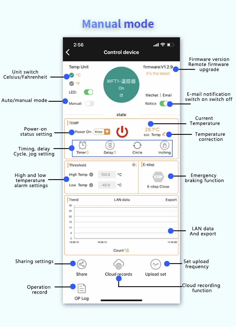 Todos los registros de operación se pueden almacenar en segundo plano, y el botón + temporizador + + APP +