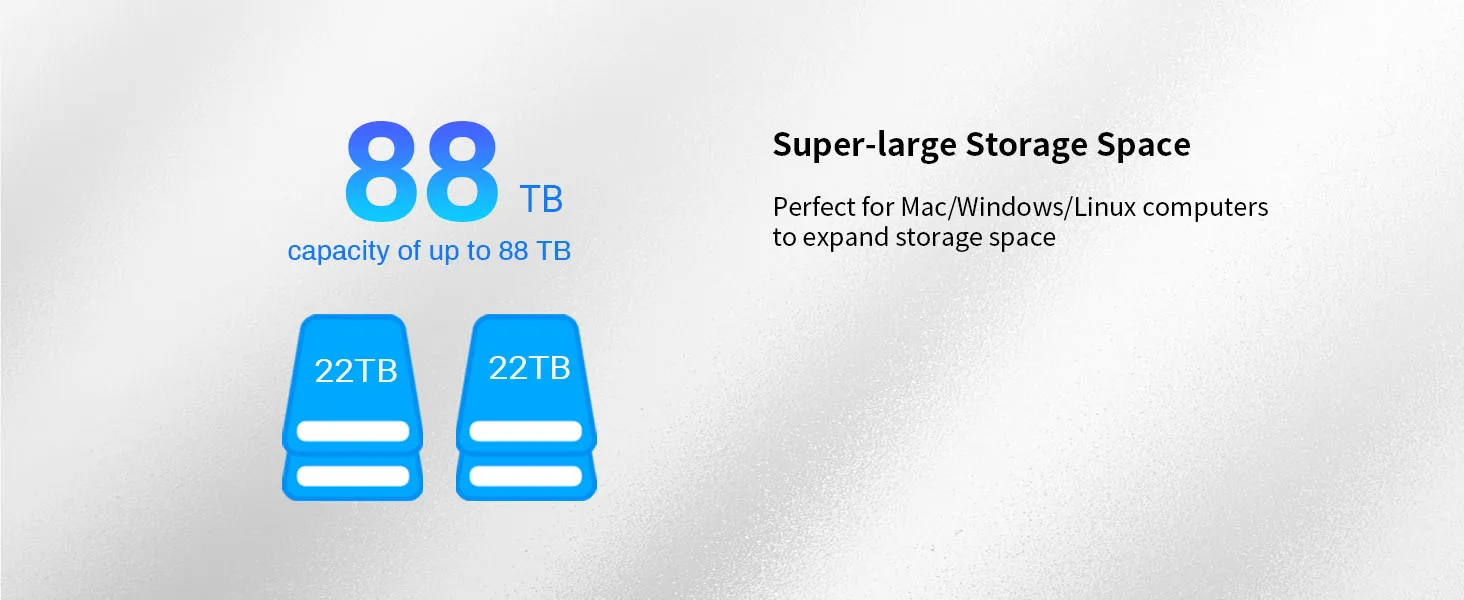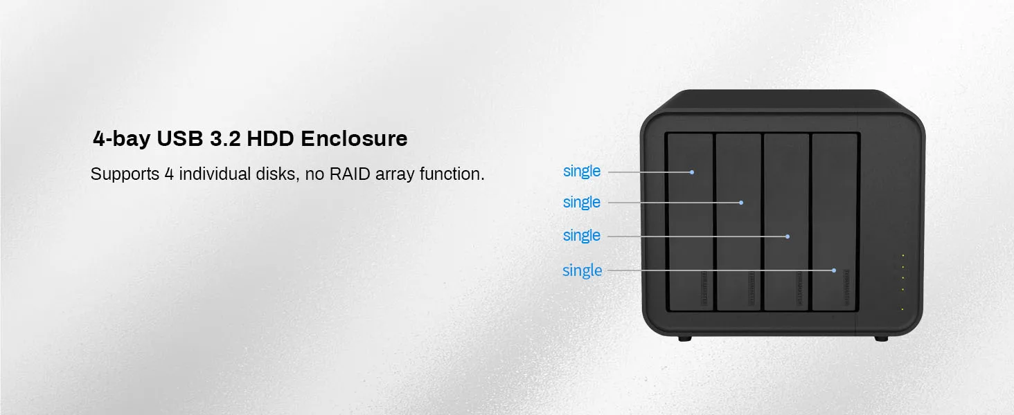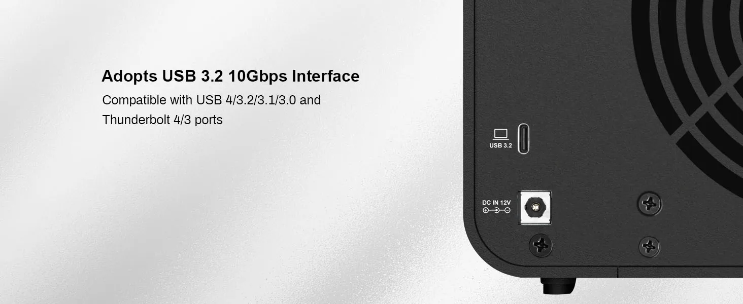 El Almacenamiento de conexión directa de 3,0 admite 4 discos individuales (sin función RAID) y cuenta con una sólida Compatibilidad de interfaz con su interfaz USB tipo C, lo que proporciona conexiones perfectas a varias interfaces de computadora, incluido USB, USB 3,1, USB 3,2, Thunderbolt 3 y 4. Su soporte intercambiable en caliente y sin conductor, La funcionalidad plug-and-play lo convierte en una solución de almacenamiento versátil y fácil de usar, compatible con diferentes sistemas operativos y dispositivos.