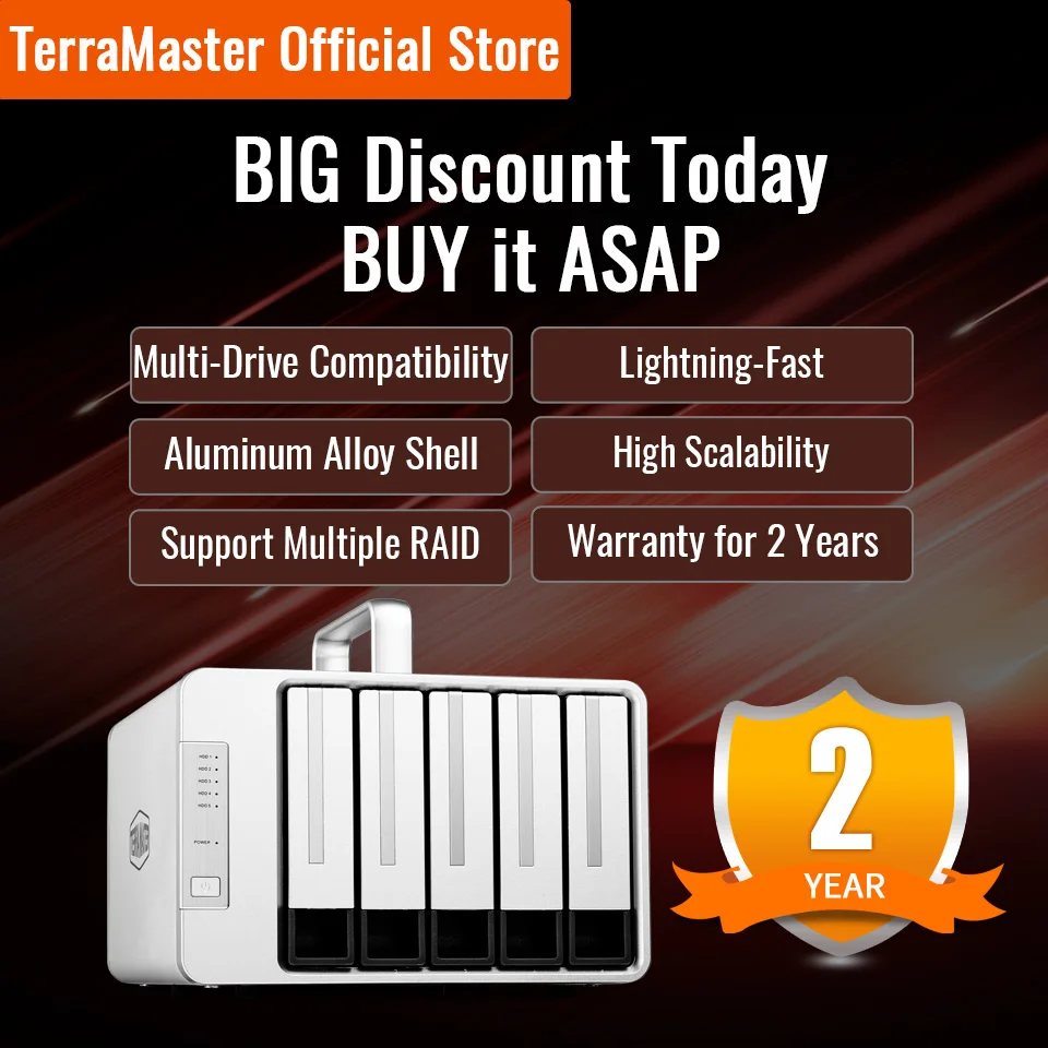 El RAID de software consume una gran cantidad de recursos en su sistema informático, lo que afecta la eficiencia de sus otras tareas. Además, los cortes de energía inesperados conllevan un riesgo sustancial de corrupción de datos para el software RAID de copia de seguridad. D5 Thunderbolt 3 DE TerraMaster cuenta con hardware RAID de nivel profesional y memoria flash integrada para proporcionar Capacidades de copia de seguridad y restauración más rápidas y eficientes, mejorando su rendimiento y proporcionando seguridad adicional.