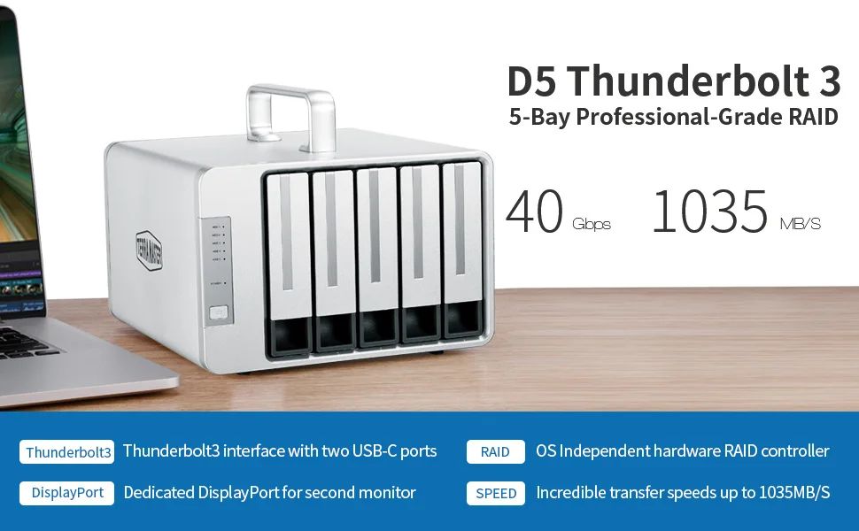 Almacenamiento RAID TerraMaster D5 Thunderbolt 3: más potencia, más velocidad.
