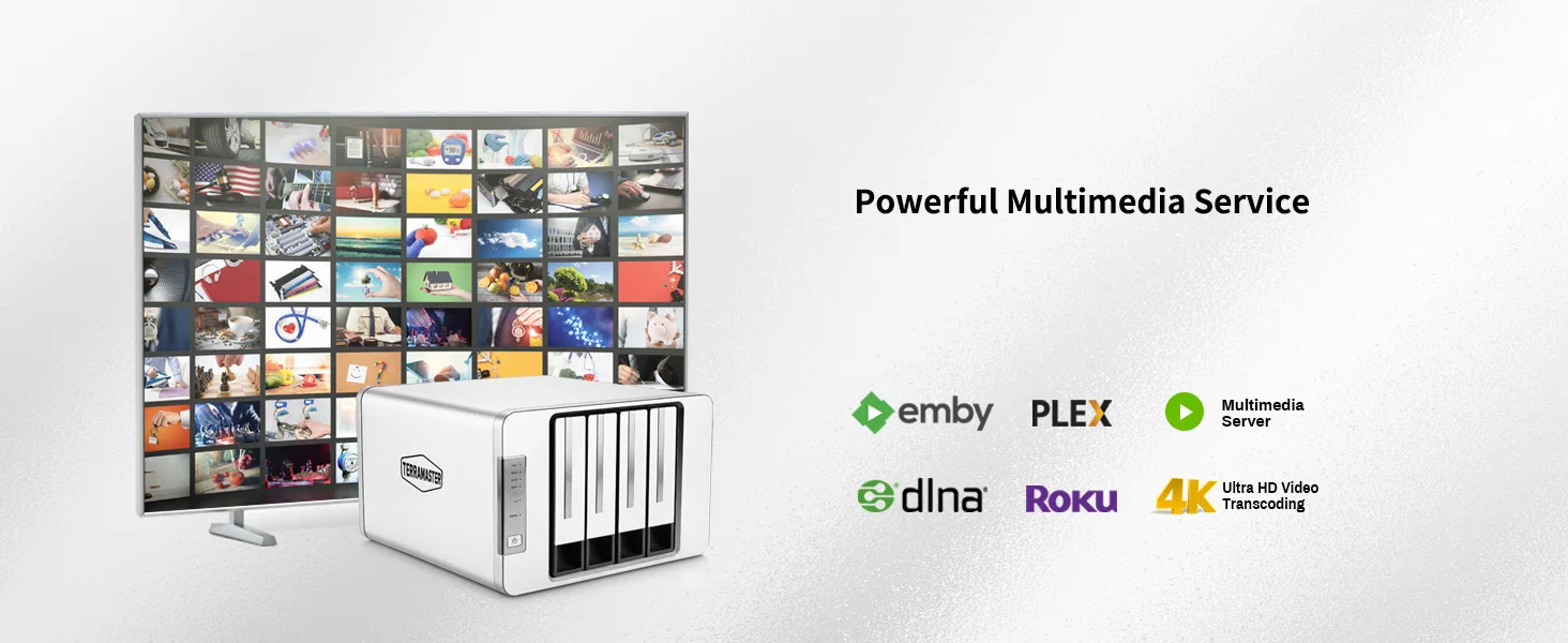 Con capacidad de decodificación de vídeo 4K, el servidor de Medios de Comunicación de la F4-423 es compatible con el protocolo uPnP/DLNA y puede transmitir vídeos a varios dispositivos multimedia, incluyendo ordenadores, teléfonos inteligentes, reproductores multimedia y televisores.