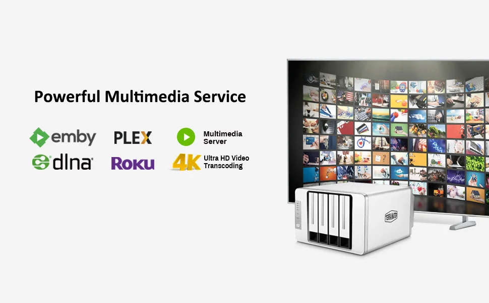 Con capacidad de decodificación de vídeo 4K, El F4-423 es compatible con el protocolo uPnP/DLNA y puede transmitir vídeos a varios dispositivos multimedia, incluyendo ordenadores, teléfonos inteligentes, reproductores multimedia y televisores, mediante el uso del servidor multimedia patentado de TerraMaster o el de otro tercero, para ofrecer a los usuarios experiencias de entretenimiento constantes y fiables.