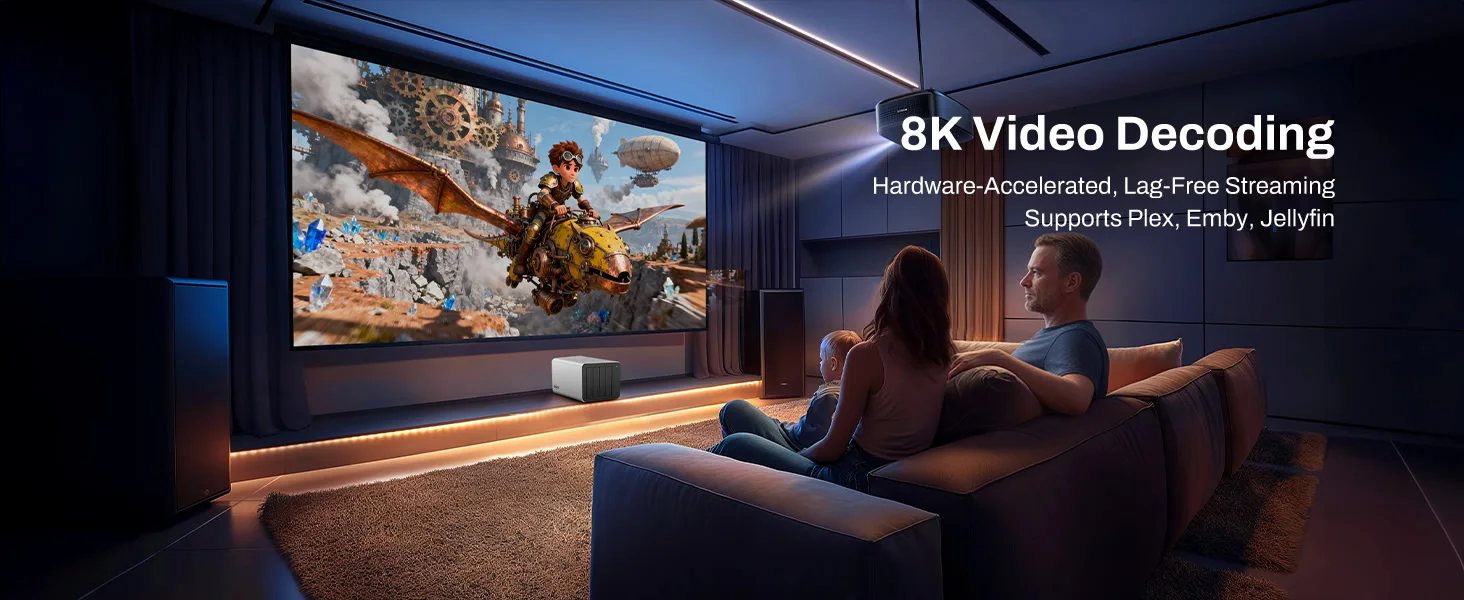 Centro multimedia doméstico:Con decodificación de hardware 4K y soporte para Plex, Emby y Jellyfin, transmite sin esfuerzo su biblioteca de medios a televisores, teléfonos y tabletas.Las herramientas de descarga integradas y la sincronización en la nube facilitan la construcción y administración de toda su colección de entretenimiento.