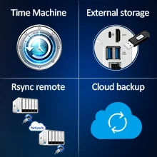 Admite Apple Time Machine, Rsync y soporte de copia de seguridad remota.
