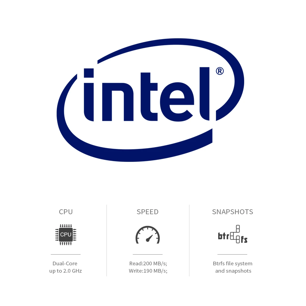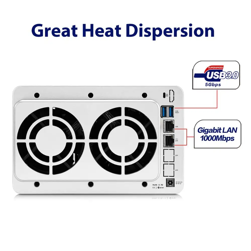 La unidad NAS de 5 bahías de TerraMaster, con un procesador Intel Apollo J3355 de doble núcleo, una frecuencia de hasta 2,0 GHz, una velocidad de lectura que alcanza los 200 MB/s, y una velocidad de escritura que alcanza hasta 190 MB/s. Para un rendimiento estable y mejor, utilice WD Reds o Seagate IronWolfs.