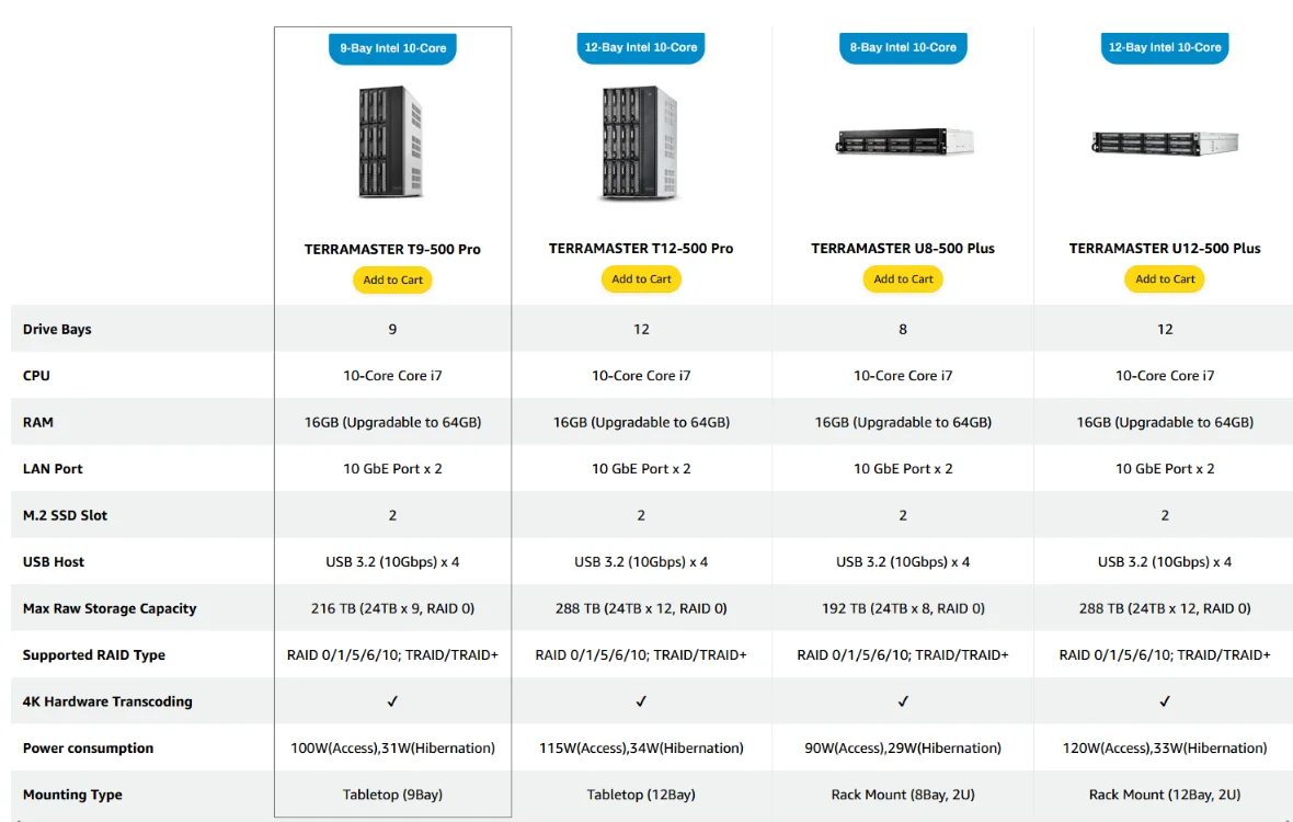Comprar TERRAMASTER T9-500 Pro Almacenamiento NAS - 9Bay Core i7 1255U CPU de 10 núcleos y 12 hilos, 16 GB DDR5, almacenamiento adjunto en red (sin disco)