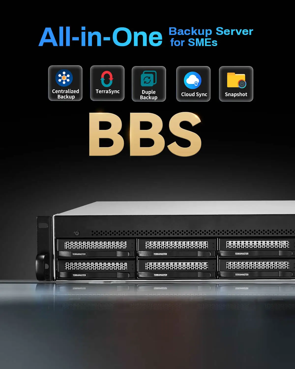 El TerraMasterMás de la marca,El almacenamiento NAS proporciona una solución de copia de seguridad avanzada e integrada diseñada específicamente para pequeñas y medianas empresas. El Business Backup Suite (BBS) se integra perfectamente con elMás de la marca,