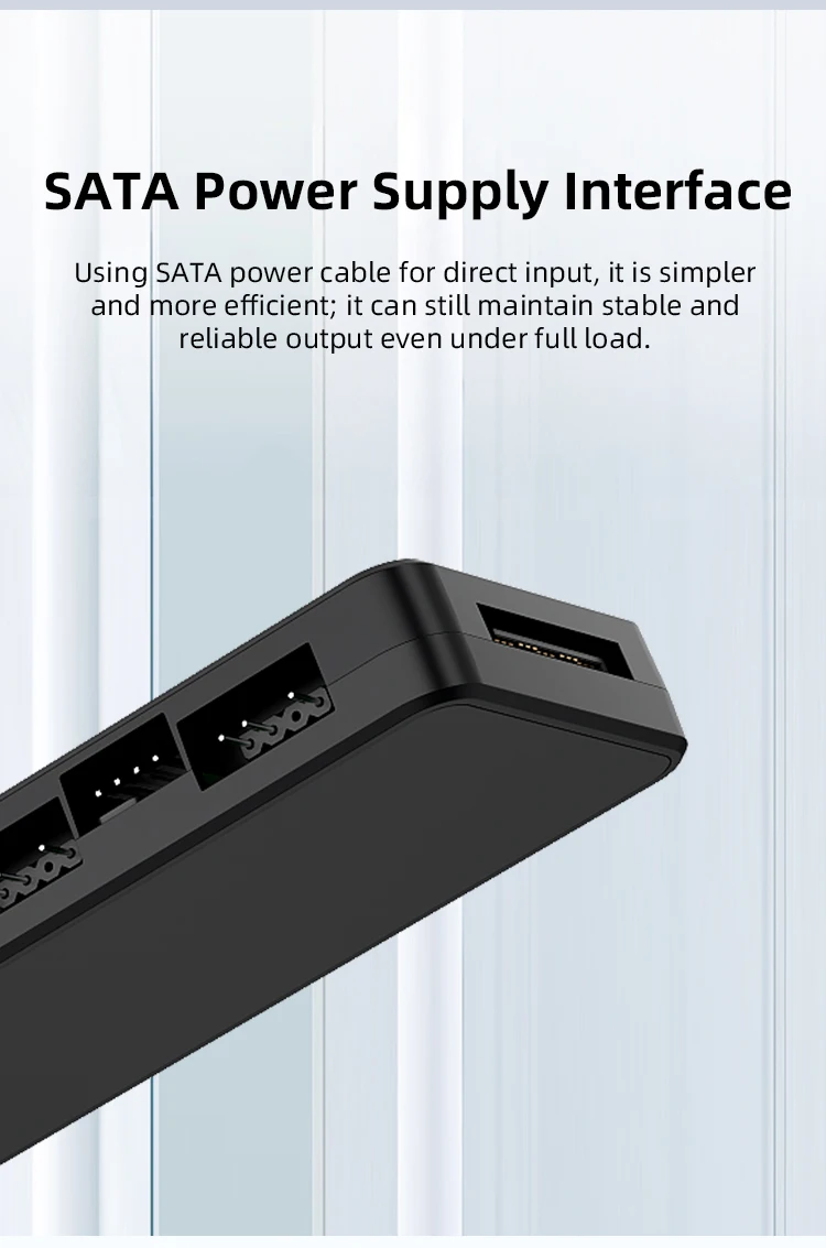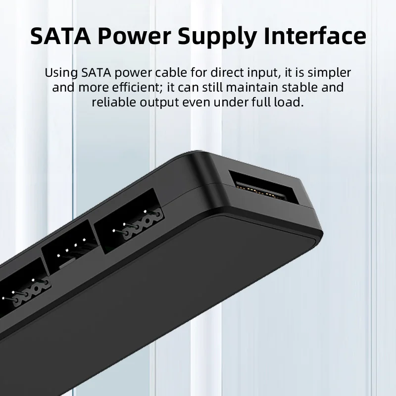 Al utilizar un cable de alimentación SATA para entrada directa, es más simple y eficiente; Todavía puede mantener una salida estable y confiable incluso bajo carga completa.