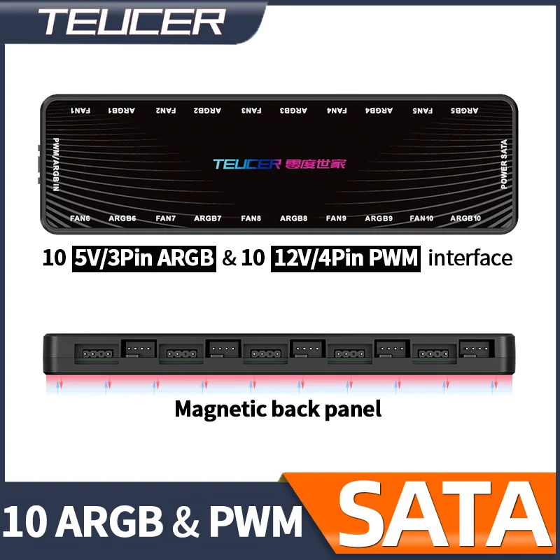 Comprar Teucer 1 a 10 PWM ARGB Hub Splitter 4 pines PWM 3 pines direccionable SATA interfaz de alimentación concentrador para caja de computadora para juegos RGB