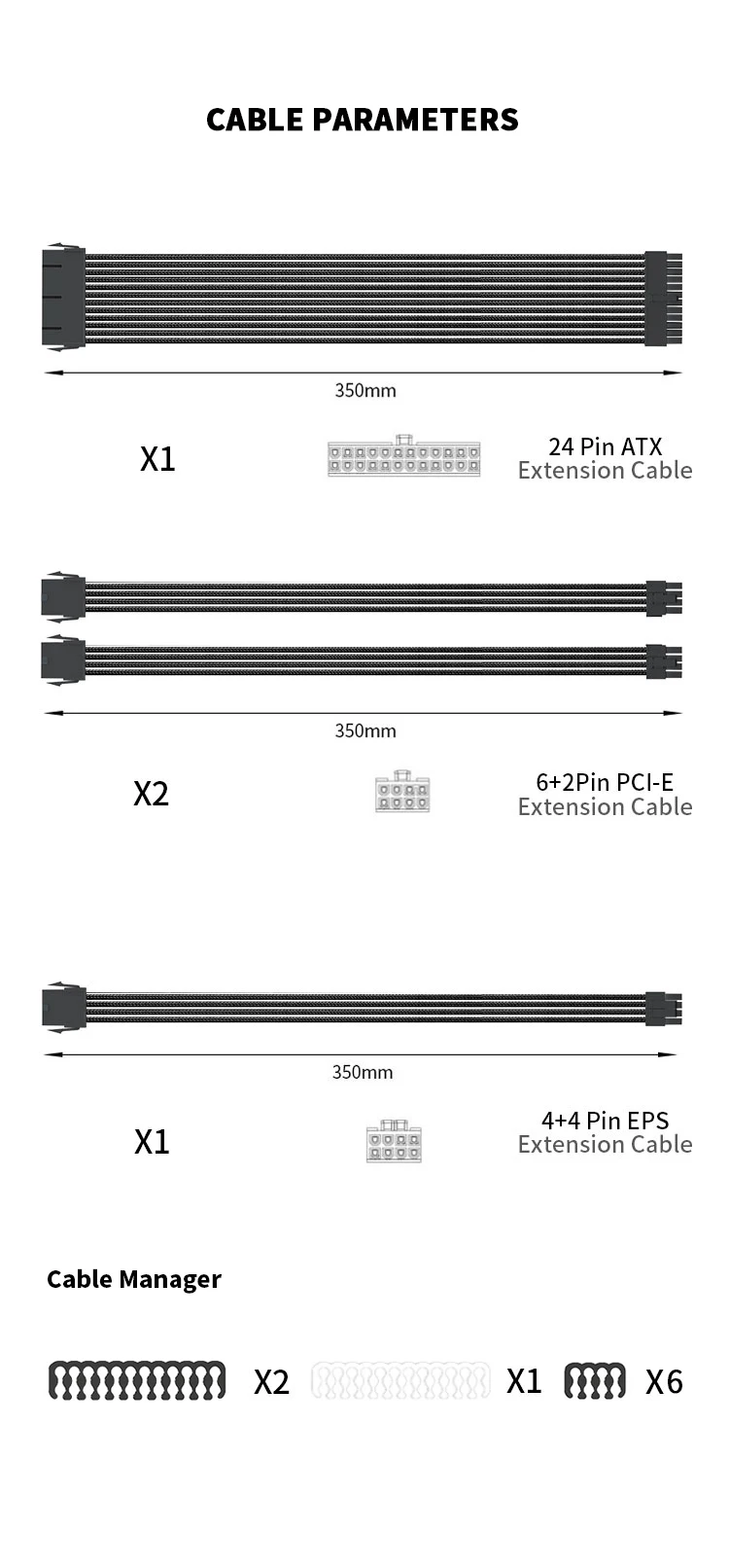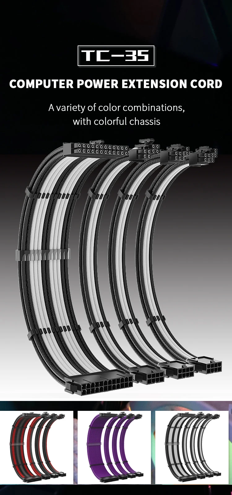 Comprar TEUCER 18AWG ATX 24Pin PCI-E 6+2Pin CPU 4+4Pin 350mm Kit de cable de extensión PSU