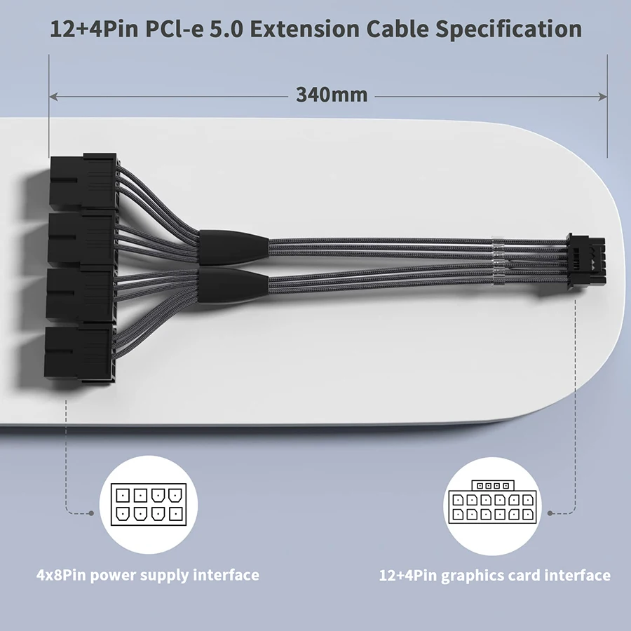 Comprar TEUCER 340mm PCI-e 5,0 16 pines (12 + 4) macho a 4x8 pines hembra Cable de extensión Compatible con GPU GeForce RTX 3090Ti 4080 4090