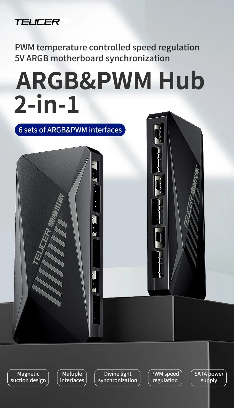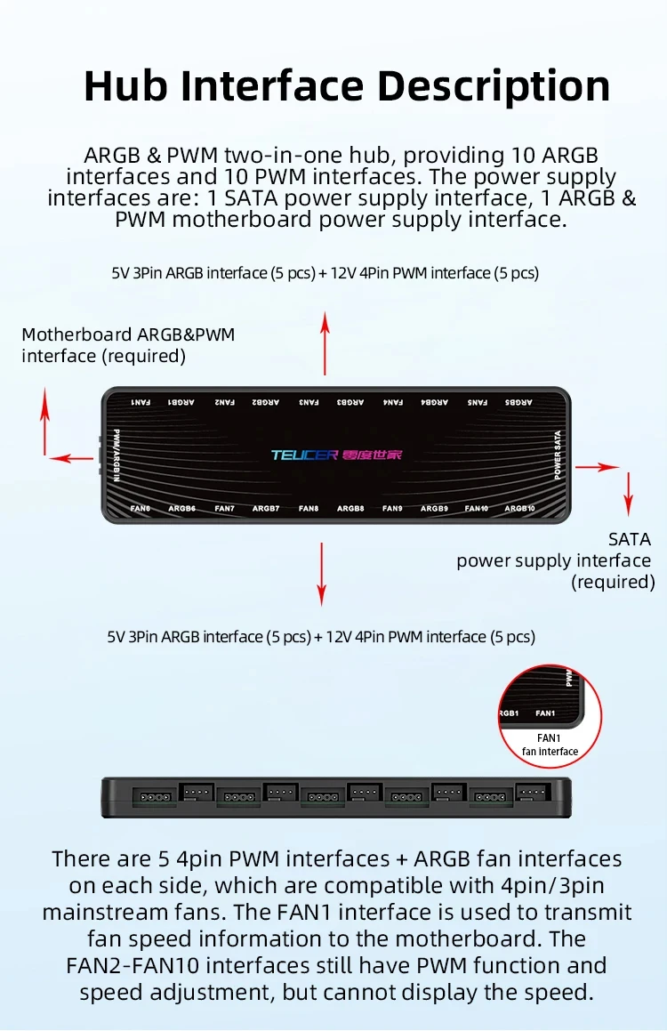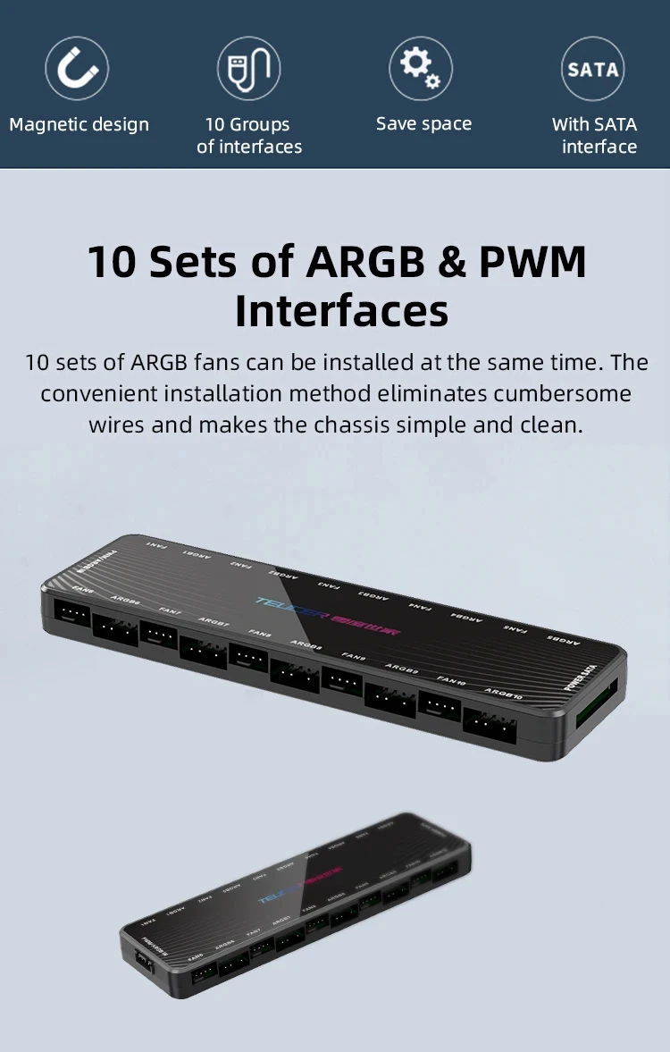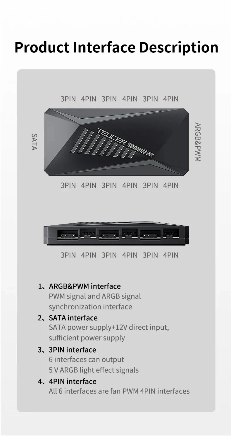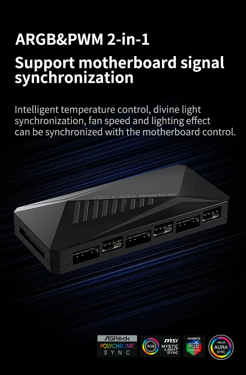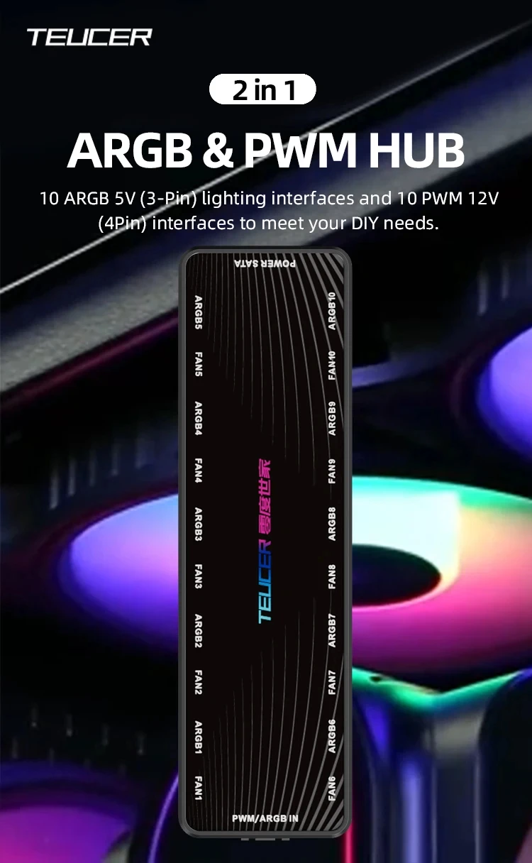 Teucer 6/8/10 vías 12V 4Pin PWM y 5V 3Pin ARGB ventilador de refrigeración divisor Hub para ordenador PC carcasa chasis radiador fuente de alimentación SATA