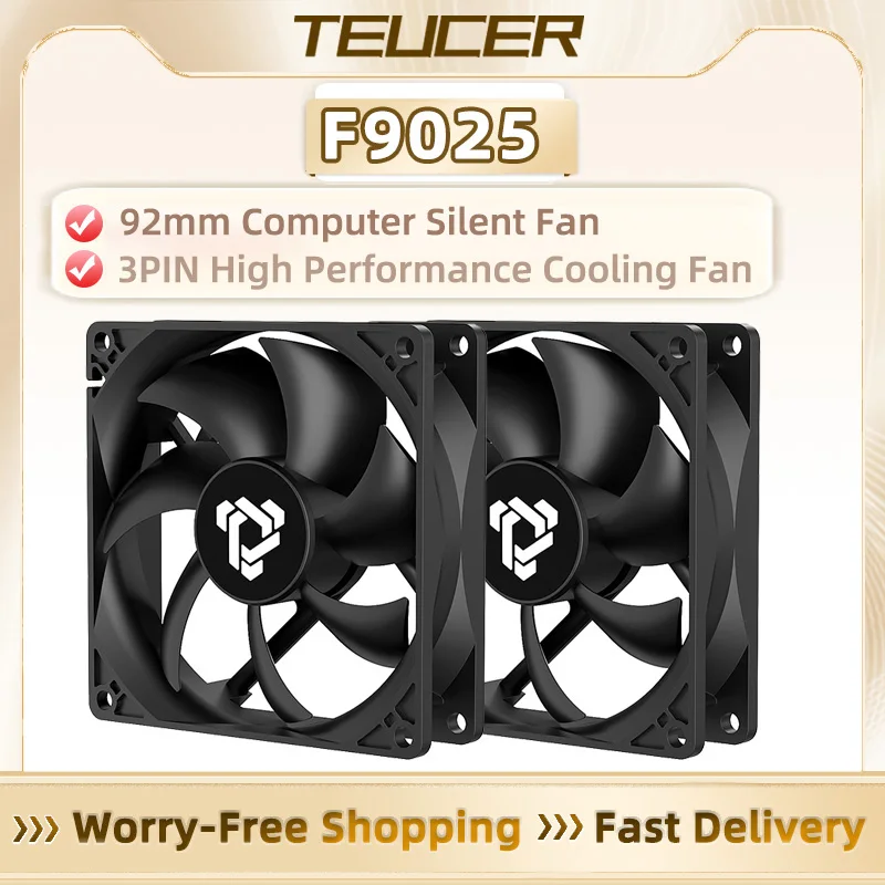 TEUCER 92mm 12V 3 pines PWM 1300RPM ventilador con cubierta de rodamiento hidráulico de alto flujo de aire de bajo ruido para chasis de PC y refrigeración de CPU