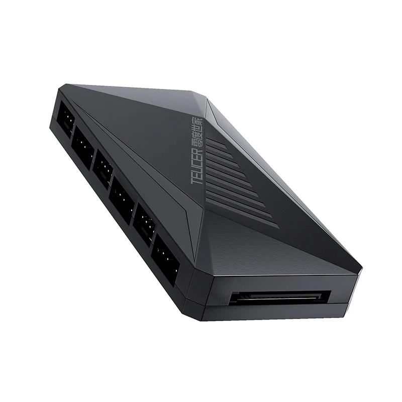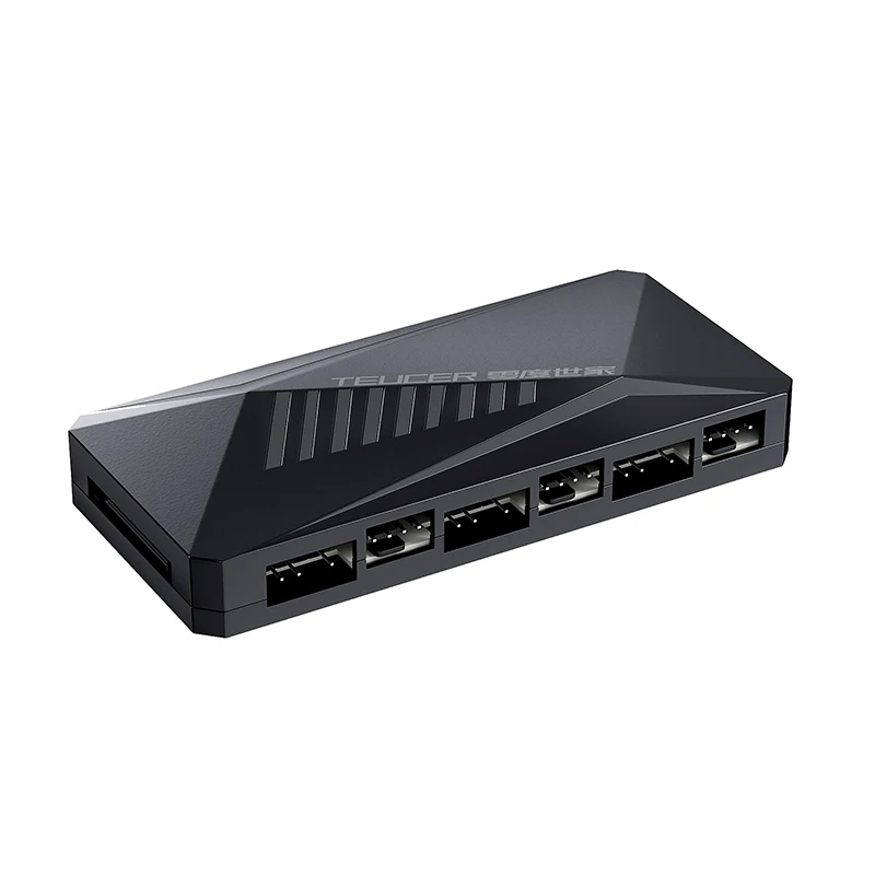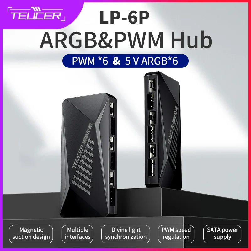 Comprar TEUCER-Adaptador de Cable de extensión de ventilador AURA, LP-6P, 5V/3 pines, ARGB, PWM HUB, 1 a 6 vías, divisor, controlador de velocidad