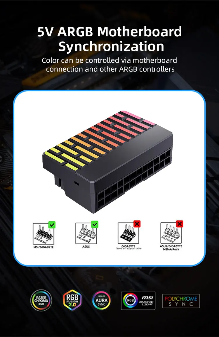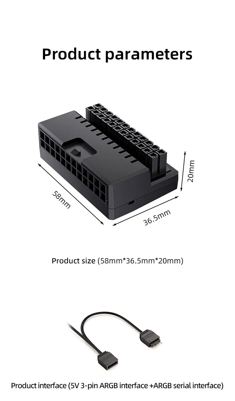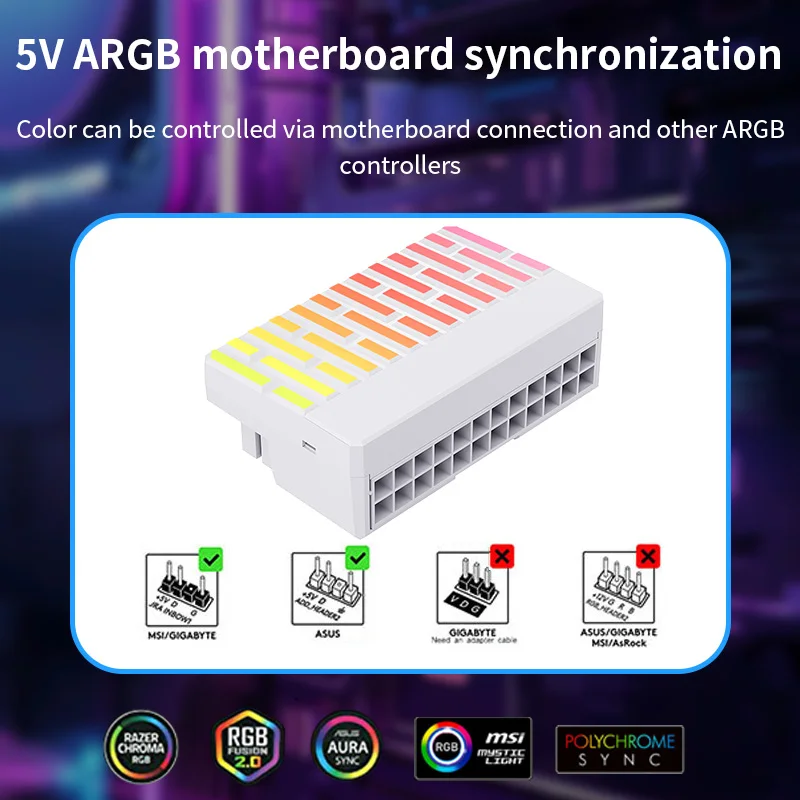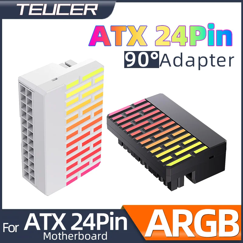 Comprar Teucer-adaptador de enchufe ATX de 24 pines a 90 ° ARGB, fuente de alimentación de la placa base, conectores de Cable, accesorios de montaje DIY para PC de escritorio