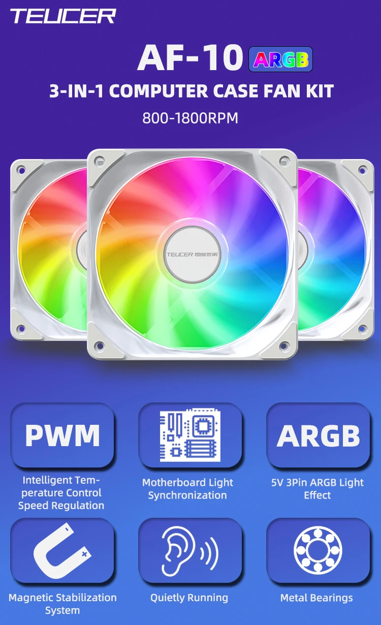 TEUCER AF10 ventilador con cubierta para PC, caja de ordenador de 120mm, enfriador de agua, ventilador de refrigeración de CPU PWM de 4 pines, ventiladores de juegos de 12cm con Control remoto ARGB