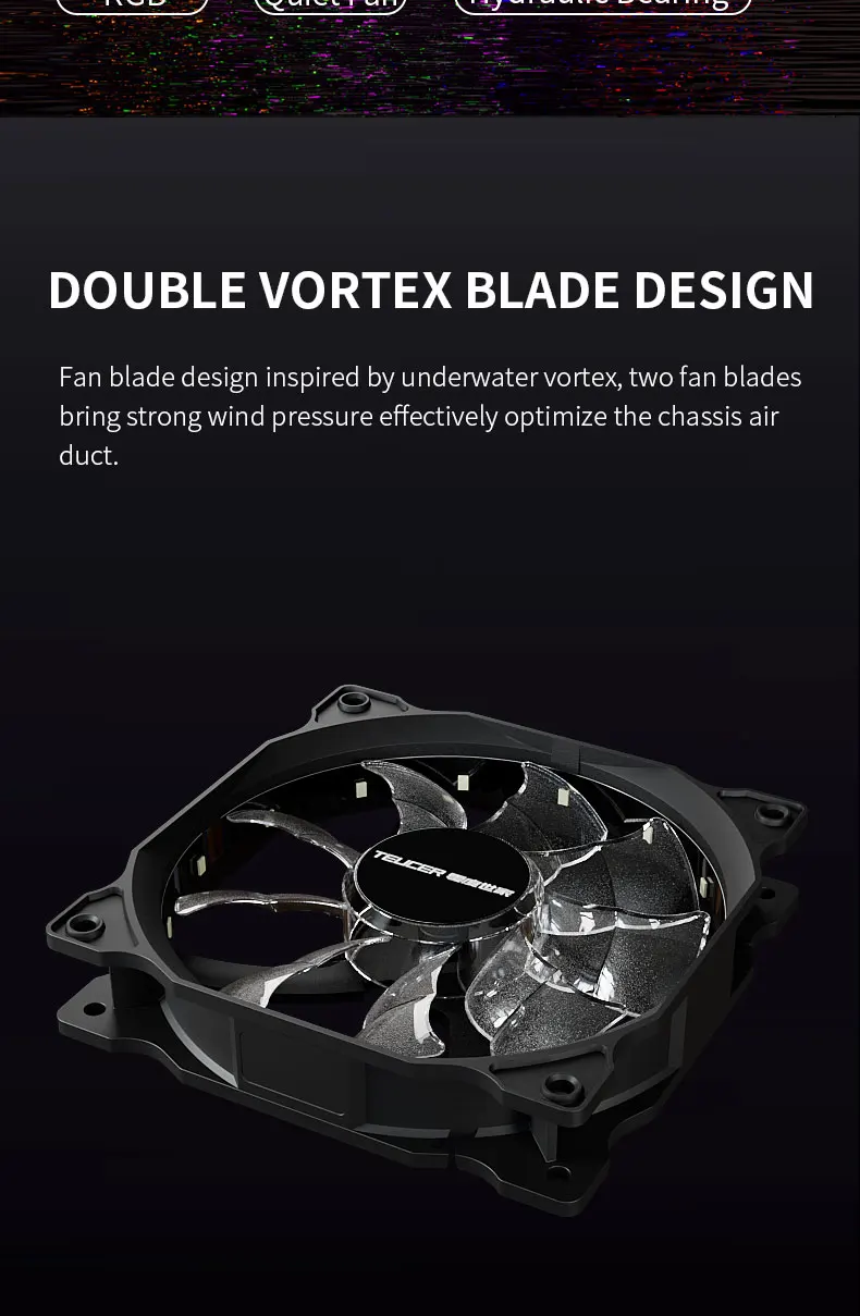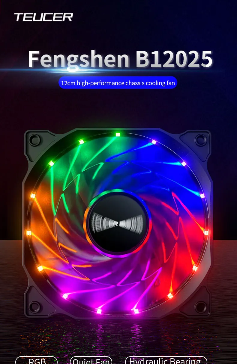 TEUCER B12025 ventilador con cubierta de PC 120mm 12V 4 pines efectos de luz Vortex a prueba de golpes silencioso ventilador de refrigeración de computadora de alto rendimiento