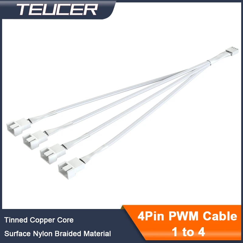 TEUCER-Cable adaptador de ventilador PWM de 4 pines, 1 a 1/2/3/4, divisor de ventilador enfriador de CPU de ordenador, Cable de alimentación de extensión de ventilador de chasis de PC