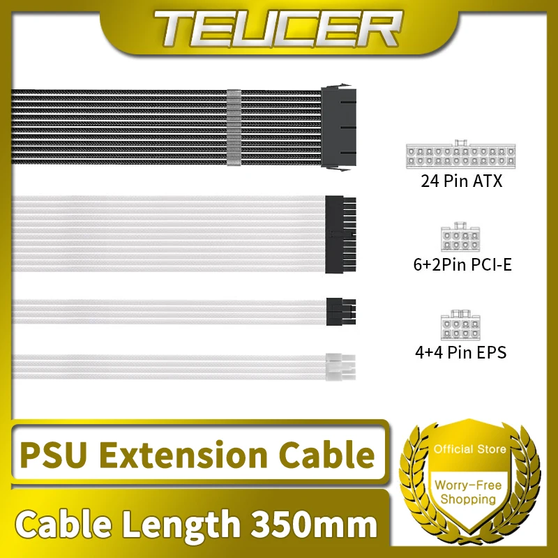 Comprar TEUCER-Cable de extensión PSU de 35cm, ATX, 24 Pines, PCI-E, 6 + 2 pines, CPU, 4 + 4 pines, funda de PC DIY, Cable trenzado de Color sólido, 1 piezas