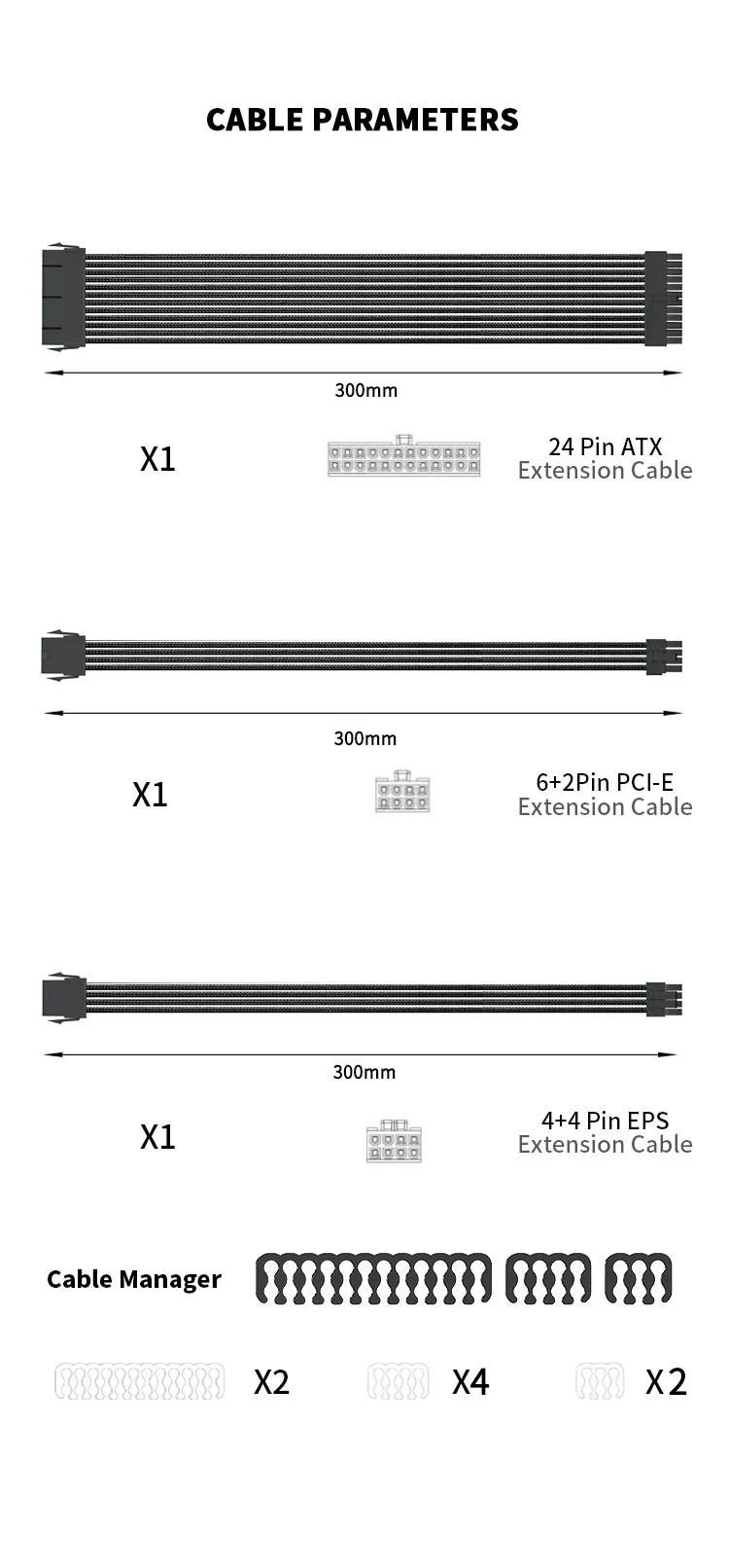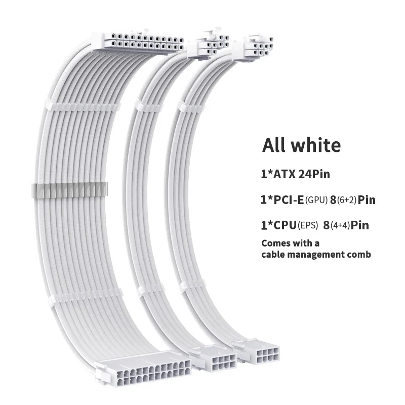 TEUCER-Cable de extensión de PSU de CPU, placa base 3 en 1, 30cm, ATX, 24 Pines, GPU, PCI-E, 6 + 2 pines, 8 pines, CPU EPS, 4 + 4 pines, 18awg, Cable de alimentación con peine
