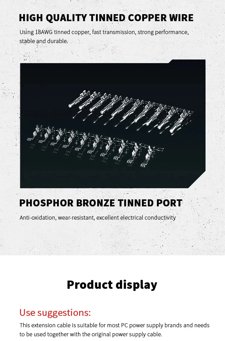 Cable de extensión TEUCER para CPU PSU, placa base ATX de 30cm, 24 Pines, GPU PCI-E, 6 + 2 pines, 8 pines, CPU, EPS, 4 + 4 pines, 18AWG, cable de alimentación con peine