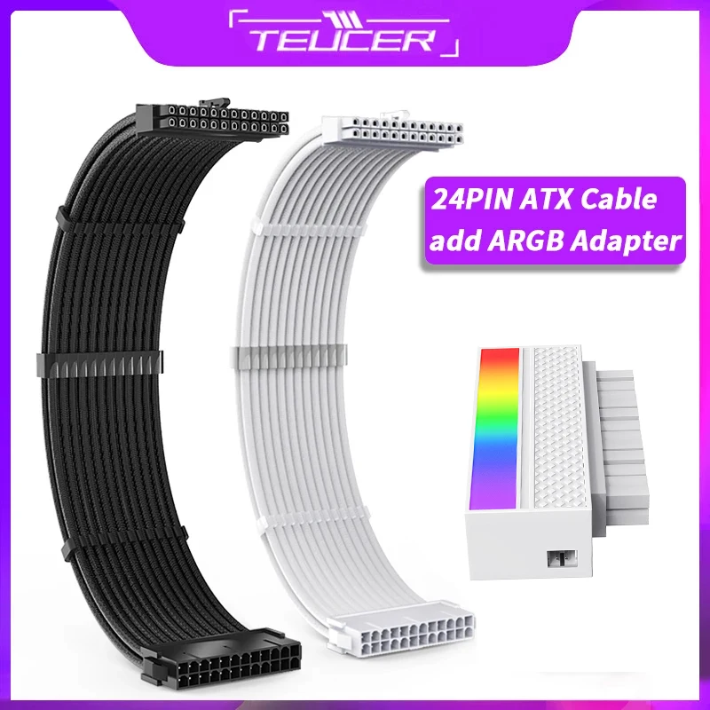 Comprar TEUCER-Cable de extensión PSU serie TC-35, Combo sólido de 350mm, ATX24Pin con peines y adaptador ARGB ATX de 24 pines