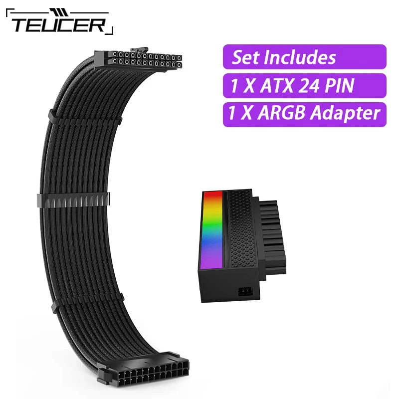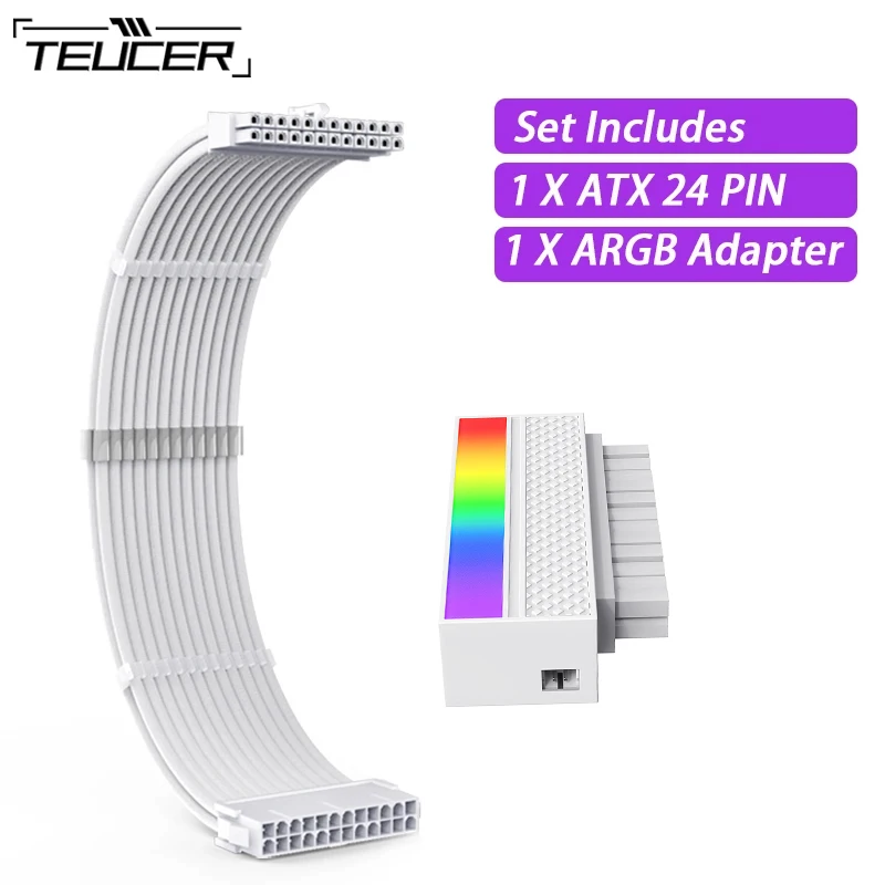 TEUCER TC-35 Series PSU Extension Cable , Solid Color Cable Solid Combo 350mm ATX24Pin With Combs And ATX 24 PIN ARGB Adapter