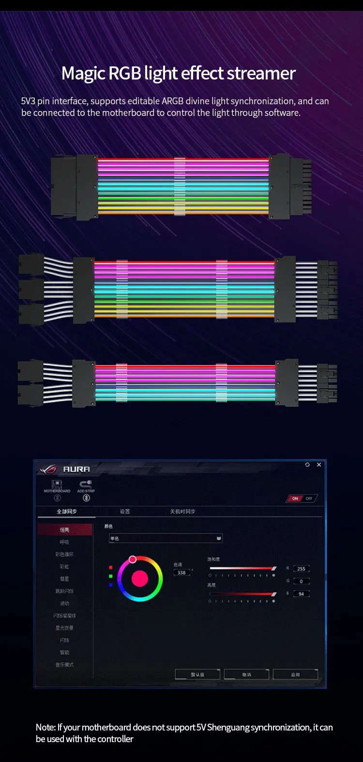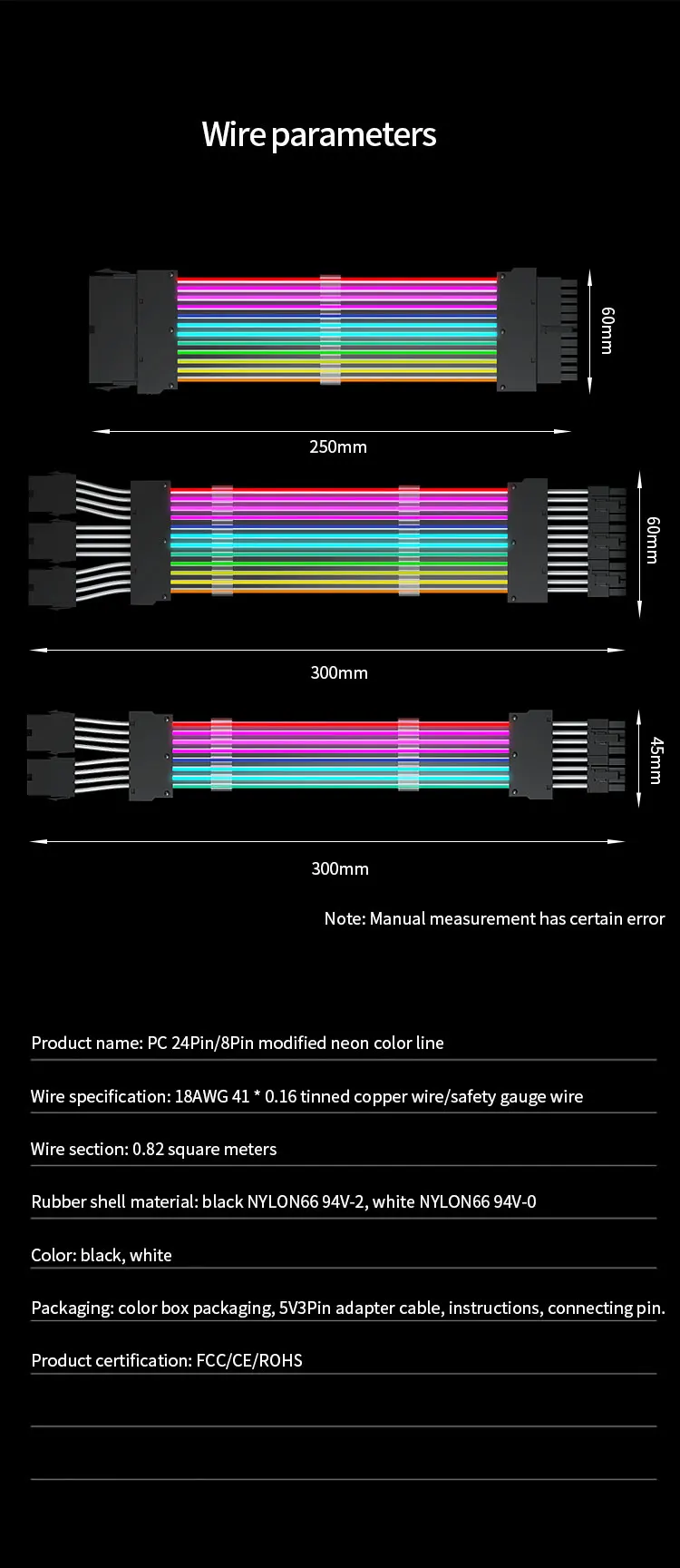 *Packaging:colorboxpackaging,5V3Pin adapter cable, instructions, connecting pin.