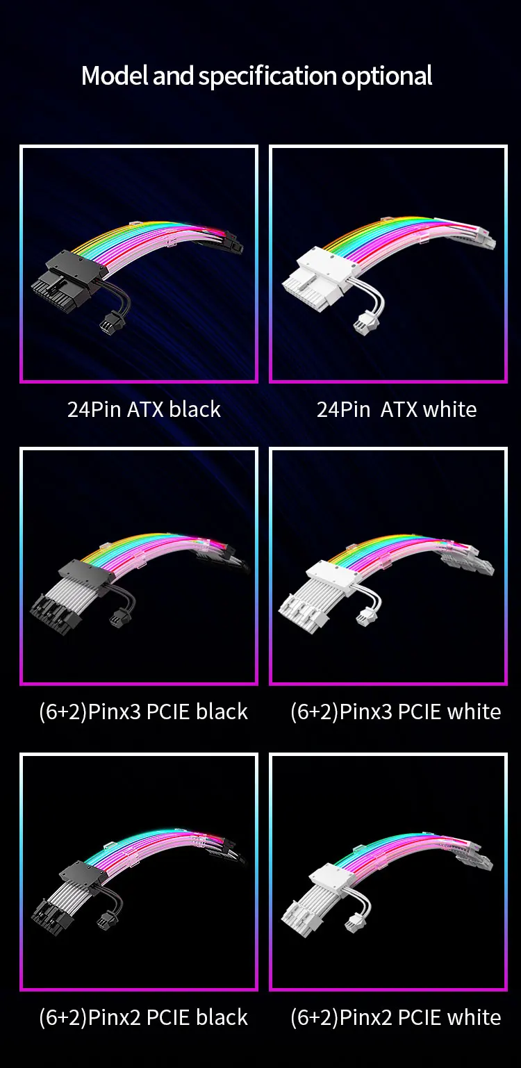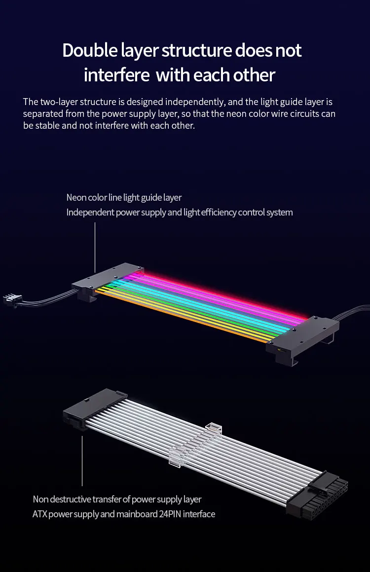 Comprar TEUCER-Cable de extensión TC-45 GPU de 24 Pines, Cable de extensión de Motheboard, ARGB, 8 pines, Streamer de iluminación, extensor VGA de neón, PC MOD AURA
