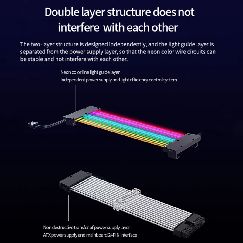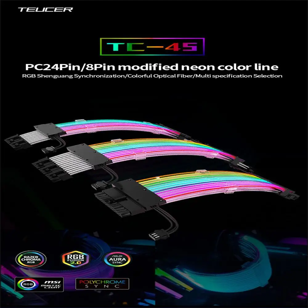 Comprar TEUCER-Cable de extensión TC-45 GPU de 24 Pines, Cable de extensión de Motheboard, ARGB, 8 pines, Streamer de iluminación, extensor VGA de neón, PC MOD AURA