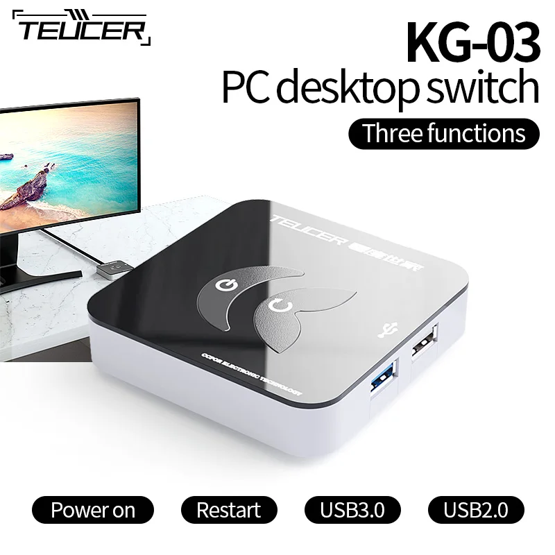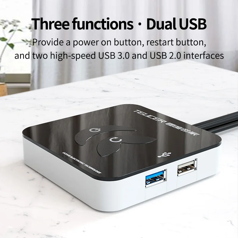 TEUCER KG-03 Interruptor de fuente de alimentación para ordenador de escritorio portátil con USB Botón de inicio externo con USB 3,0