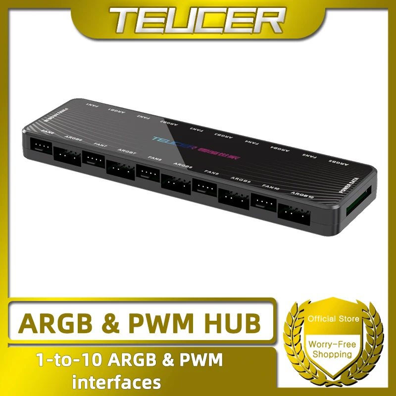 Comprar TEUCER-concentrador de interfaz SATA para ventilador de carcasa, adaptador ARGB direccionable de 1 a 10 PWM y ARGB, 4 pines, PWM, 3 pines