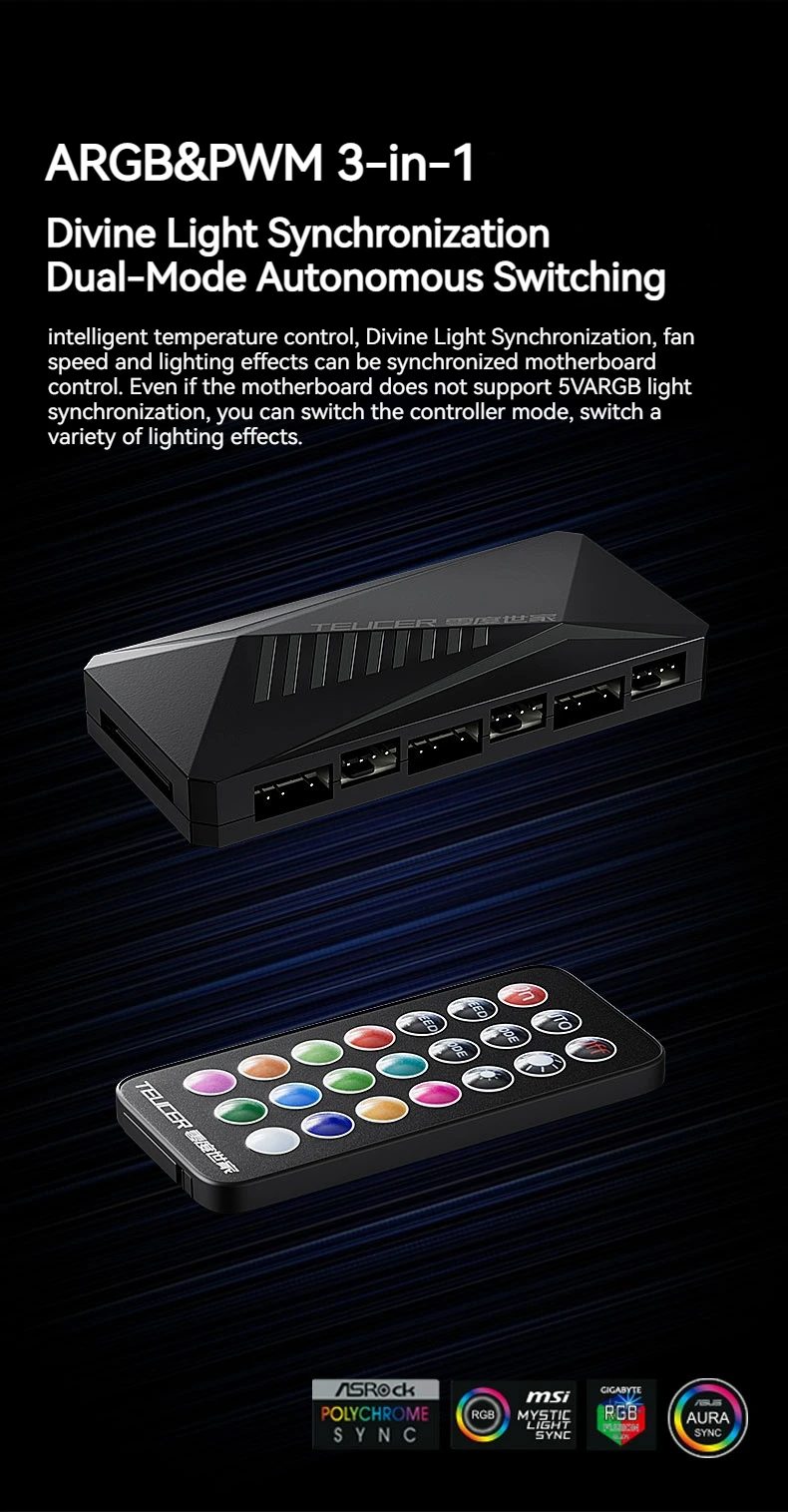 Comprar TEUCER-controlador PWM & ARGB 6P, 4 pines PWM 1 Drag 6 Splitter SATA Power Control de temperatura, Hub de succión magnética para funda de PC