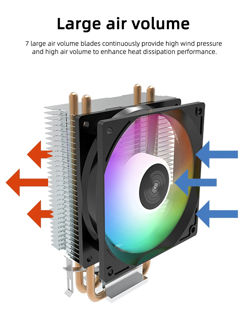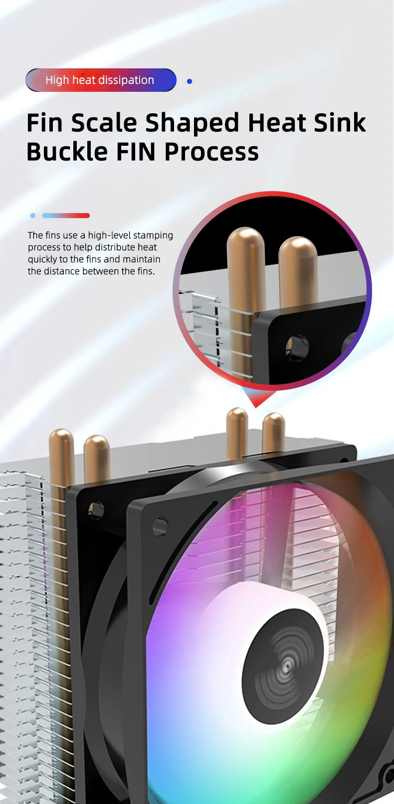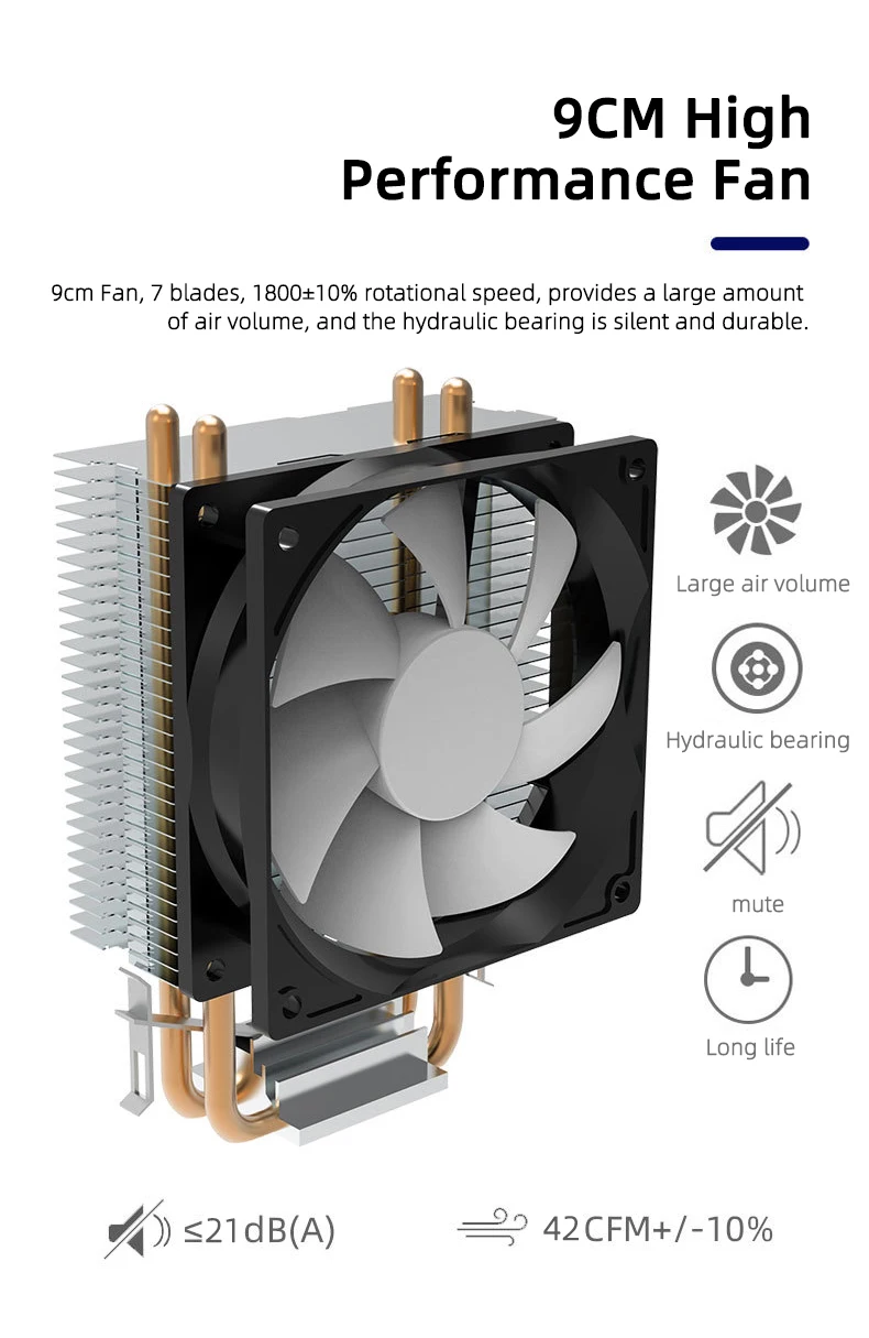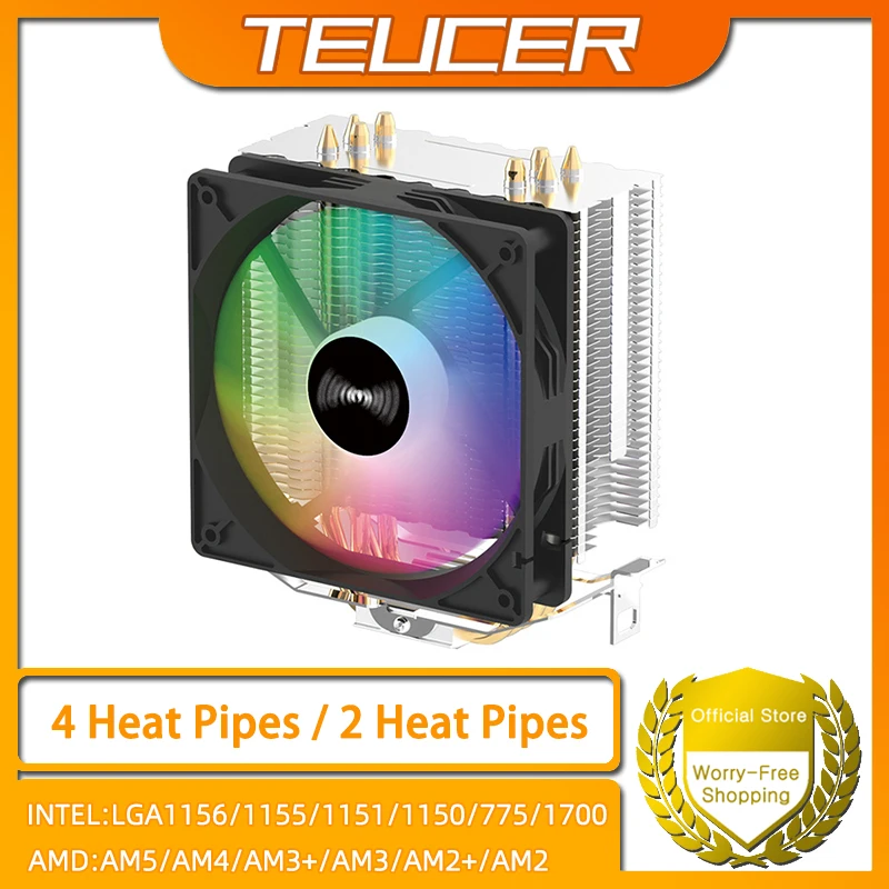 Comprar TEUCER-enfriador de CPU con 2/4 tubos de calor, ventilador silencioso RGB de bajo ruido para Intel 1700/1150/1200 y AMD AM2/AM3/AM4